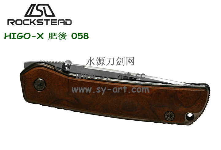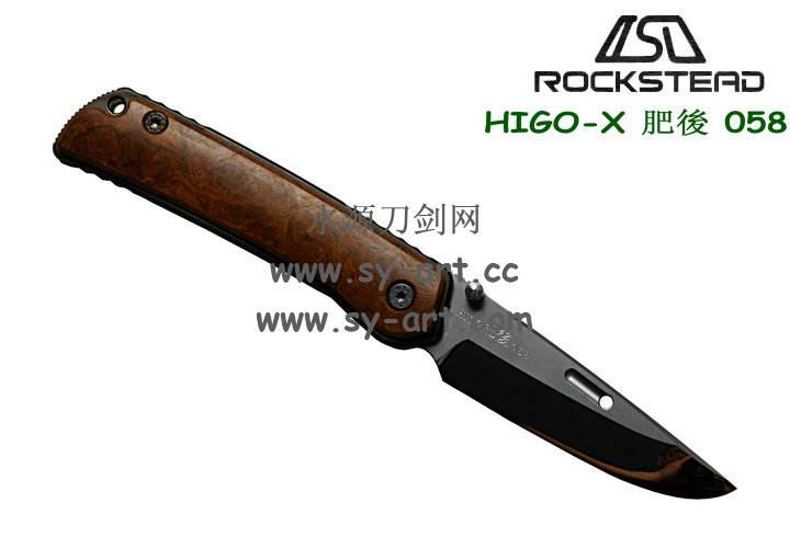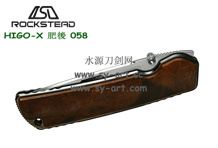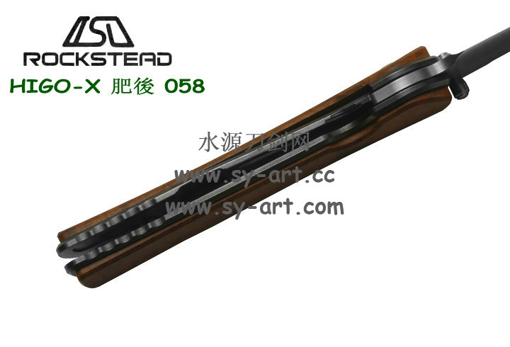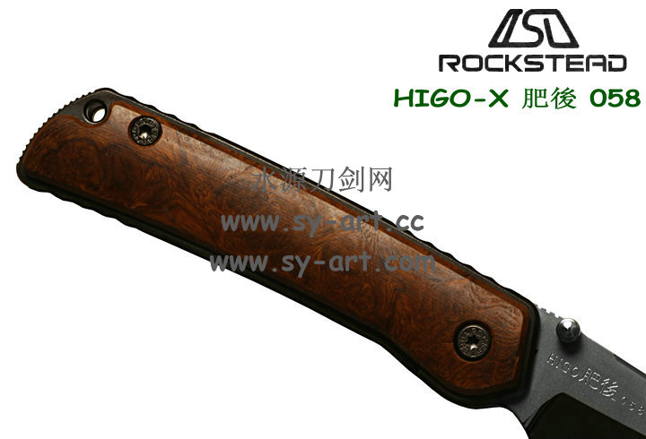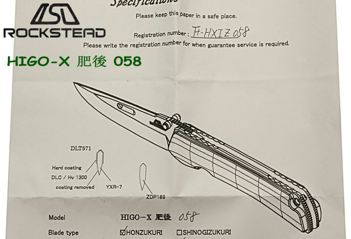 This knife is a flagship of the Higo series. It is not possible to select it freely though there are variously steel material of the scale and combination of the embellishments. The blade of ZDP189 can cut Manila rope 1,000 times, and slices paper afterwards. The bottom of this blade edge angle is 30 degrees, and it's continuously change to the top of the blade. The top edge’s angle is 24 degrees. This change angle is a result of the sharpness pursuit of ROCKSTEAD. This knife is preeminent sharpness.. Please wipe it when you used this knife. This knife will shine permanently only by wiping it. You can enjoy its sharp cutting capabilities for a long time. This scale is fixed with two screws and decomposition is easy. After cutting the fish or the animal, you can easily clean it. ROCKSTEAD 日本花田洋发展到现在被一个接一个的刃友所追捧,然而现在只有短刃型,以后会根据大家的需求对此刃有所改变的,我们将会把YXR7钢的特性发挥到最大,创造出更优秀的作品。