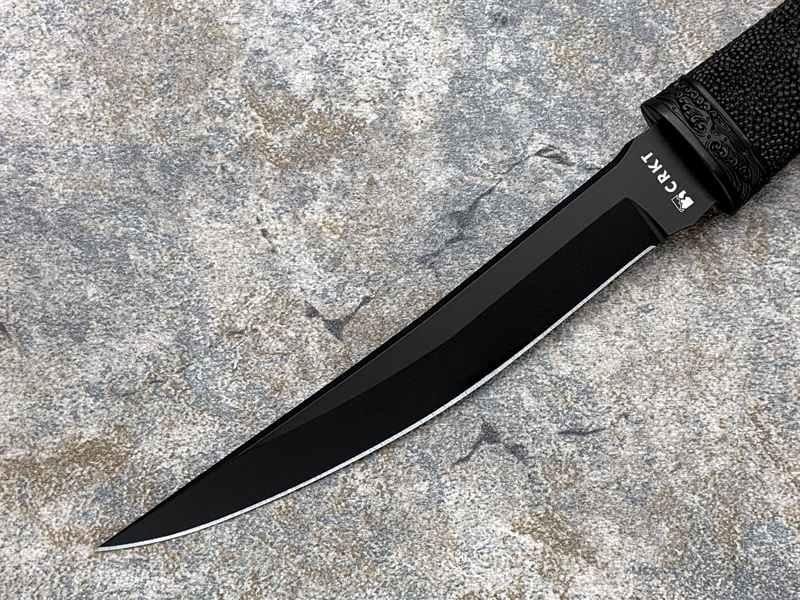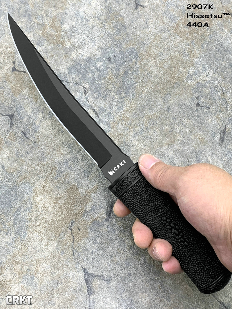 全 长: 305mm 刃 长: 181mm 刃 厚: 5.5mm 刃 材: 440A 硬 度: 55-57HRC 表 面: 黑色环氧涂层 柄 材: 防滑表面橡胶/Kraton 重 量:227g 附 件: Zytel R鞘 产 地: 台湾 James Williams,Hissatsu的设计师™, 是一名前陆军军官和武术练习者/教官,拥有超过45年的经验。他的防御战术体系,即战术战略体系,起源于古代武士军事体系以及俄罗斯的Systema军事艺术。