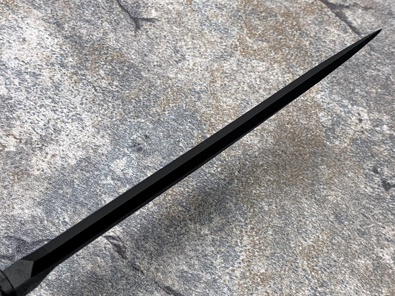 ●刀刃设计-刀刃采用440A钢材制造而成,硬度达RC55°~57°,外层再包覆一层钛氮化物,有效阻挡阳光反射以及独特的造型 ,使刀刃中隐含巨大的穿透力和猛烈的挥击能力 。