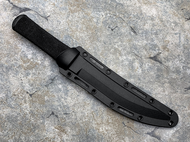 ●刀鞘-采用Zytel R材质,属于锁入式的厚实刀鞘,不仅坚固、质轻、安全,而 且附上可移动式背夹 (适合与标准的军用腰带、警用勤务腰带使用) ,也可依照勤务需求上下调整,垂直、水平方向,不论收藏与实用都适宜。