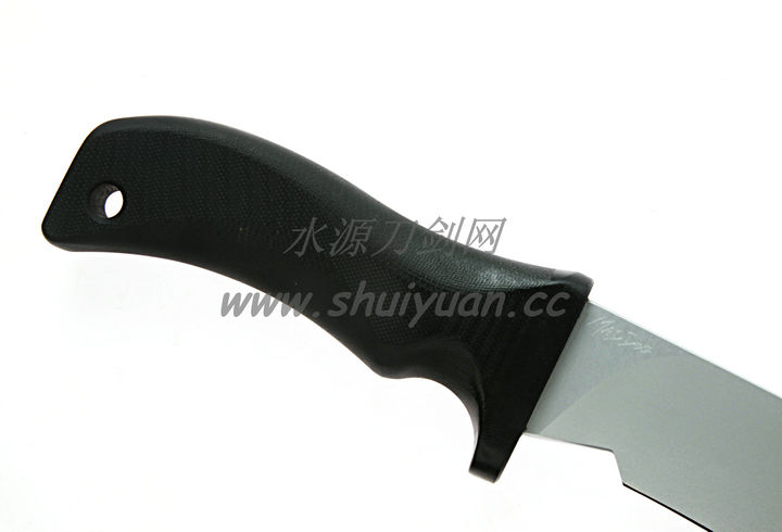 Mad Dog刃具的手柄都经过人体功能学设计,形状独特,把握极其舒适称手。它的食指凹槽让使用者即使看不见也能凭手感找到握刃的位置。手柄材料是一种不公开的黑色环氧玻璃,可承受极高压力和高温,这种材料可以轻易地承受 .45口径枪子弹的冲击,而且几乎不被化学溶剂腐蚀。全隐藏式柄芯,确保使用者在工作时不会触电。