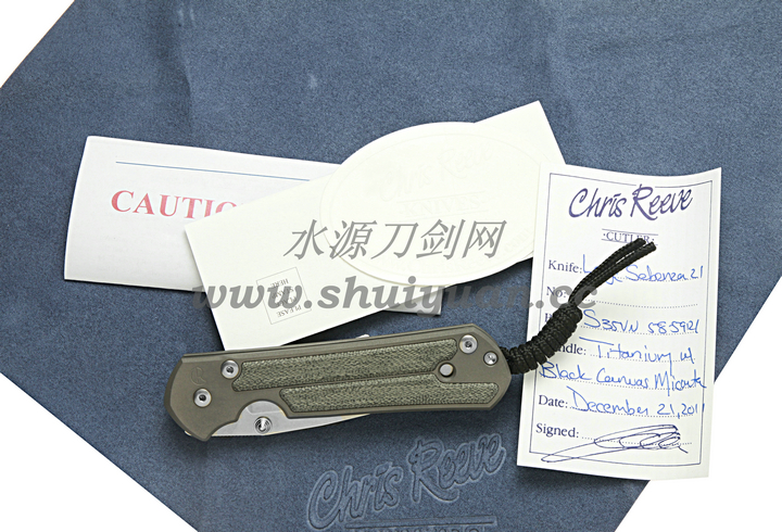 Chris Reeve 是手工刃界呼声最高的制刃师,以高水准的直柄刃和叫做Sebenza的边锁折刃而闻名于世,Sebenza具有一种独特的锁定装置,被称为Chris Reeve 整体锁。Chris Reeve来自南非的海港城市德班,从1975年开始制作手工刃,1984年成为一名职业刃匠。五年后,他做了一个自成为职业刃匠之后的最重大的决定:带着全副身家背井离乡来到美国,因为这里的发达的技术和信息可以令他的制刃技术如虎添翼。在离开南非之前,Chris Reeve已经积累了13年的刃具制造经验,这些从实践中学到的全面的技能无疑为他到美国之后的发展奠定了坚实的基础,使Chris Reeve刃具公司不同于大多数其他刃具公司的一点,就是刃的品质、表现和价值。Chris Reeve刃具都非常强劲而耐用,经过广泛地测试后才出厂。每把刃都具有独特的设计,采用顶级质量的钢材,用手工方法精工细作地制造而成。今天,Chris Reeve刃具仍然是小规模生产,Reeve将所有心血倾注在其设计中,并保证每一把Chris Reeve从离开爱达荷州博依西的商店那一刻起就享有终身免费保修,他对刃具的关怀并不仅止于出售时。对拥有Chris Reeve刃的原始顾客,不论他们用了多久,Reeve都会精心地为他们重新打磨,或为直柄刃重新作表面处理,这些服务都是免费或象征性地收一点。所以,Chris Reeve的顾客都能放心地使用他们的刃,并且能使刃具常年如新,不损收藏价值。很多买手工刃的人都认为产品的品质与刃匠的个人修养密不可分,在这方面Reeve是个真正的绅士,可以真正感受到他亲切和诚恳的个性,他对每个停在他的展台前的人都报以友好的微笑,详细地回答每个问题,再加上品质超群的产品,他简直算得上是制刃业的“超人”。