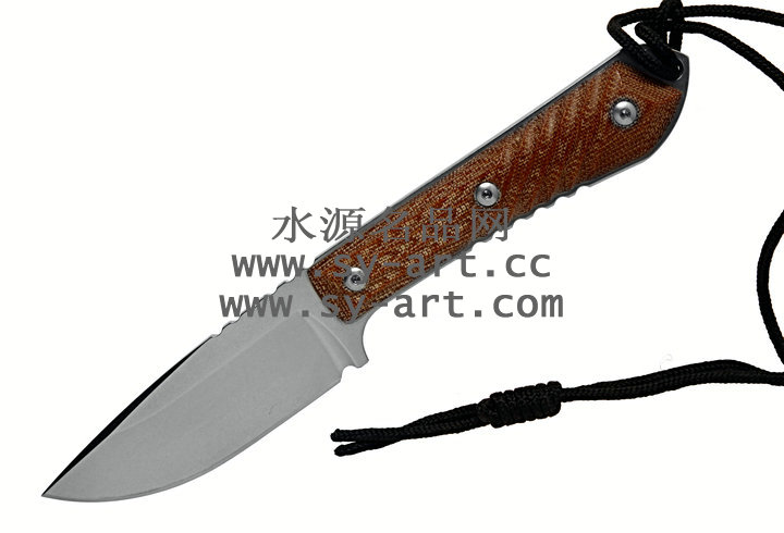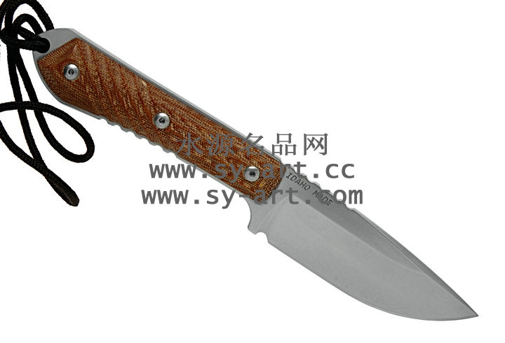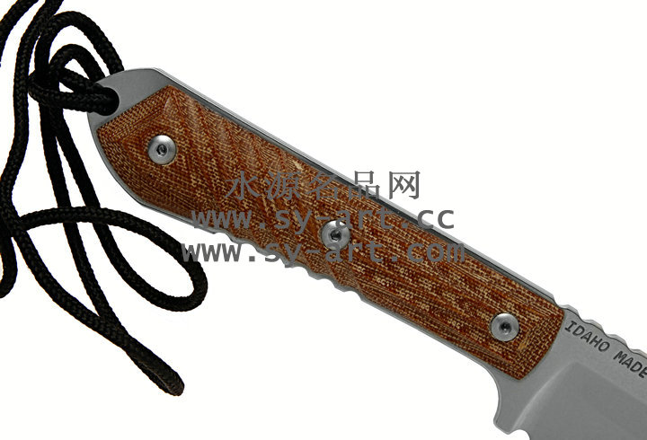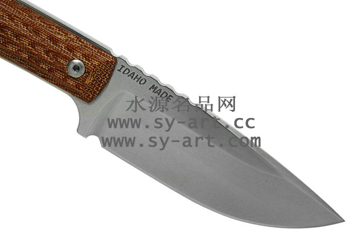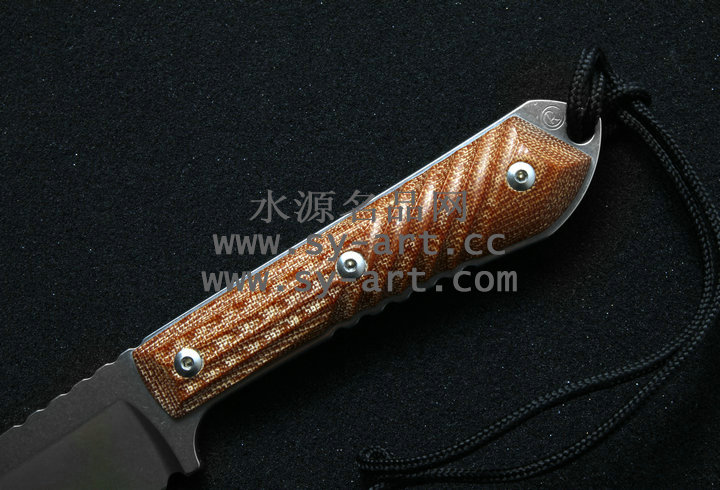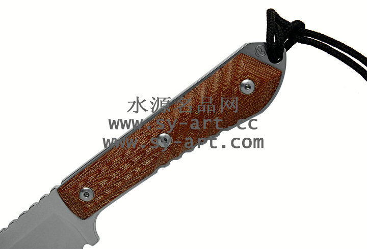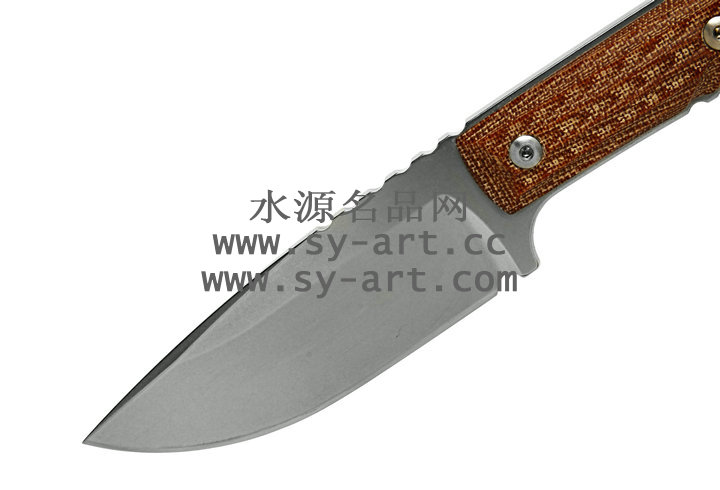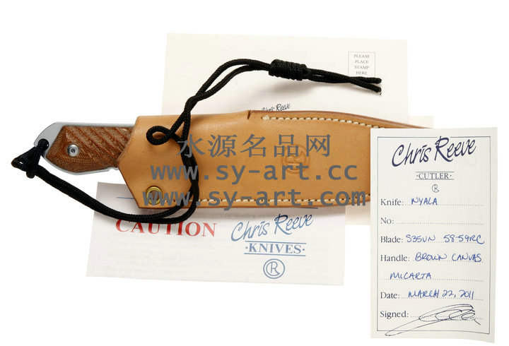 类 型: 直刃 型 号: Nyala 全 长: 216mm 刃 长: 95mm 刃 材: CPM S35VN stainless steel 硬 度: 58-59 HRC 表 面: 石洗 刃 厚: 4.57mm 柄 长: 121mm 柄 材: brown canvas micarta 重 量: 176g 原产地: 美国 Nyala 羚羊小猎刃为Chris Reeve 2010年最新刃款,外型优美线条与简洁的设计承袭Chris Reeve一贯的风格。 CPM S35VN 不锈钢刃身表面以石洗(Stonewash finish)处理,水滴型刃身可广泛的运用在许多切割的程序上;棕褐色电木材质握柄有着类似与Nyala羚羊与众不同的螺旋纹型。