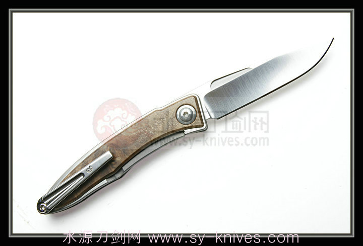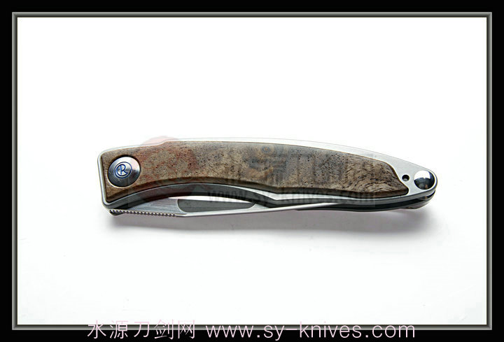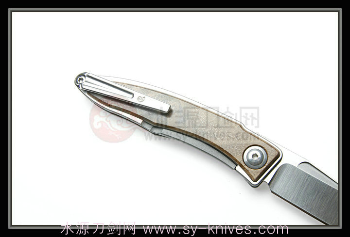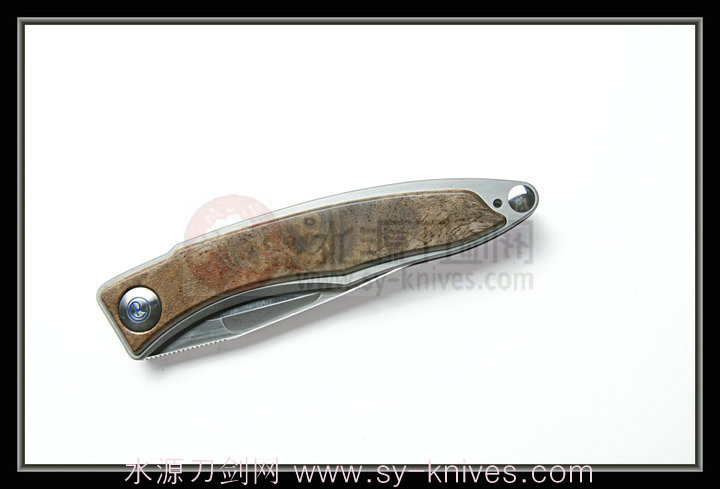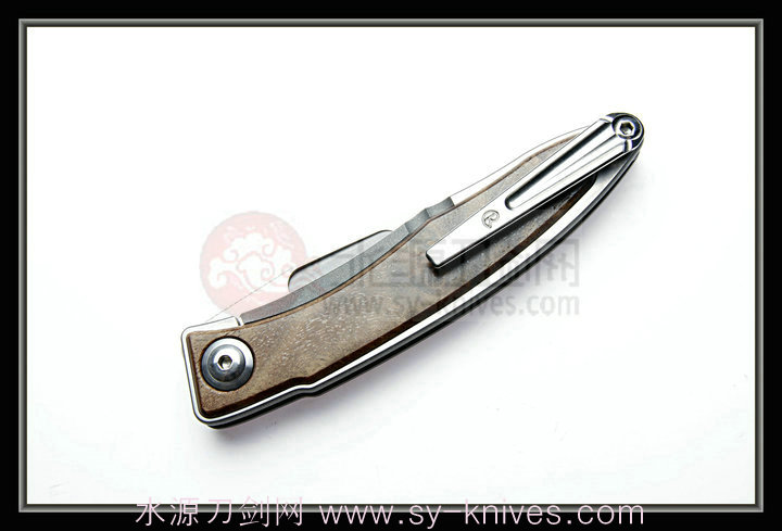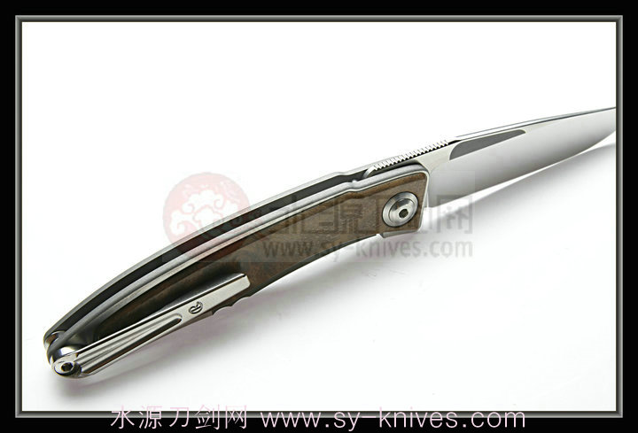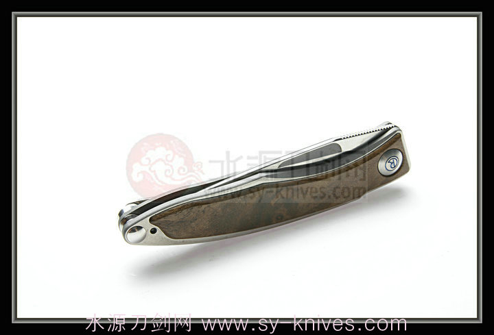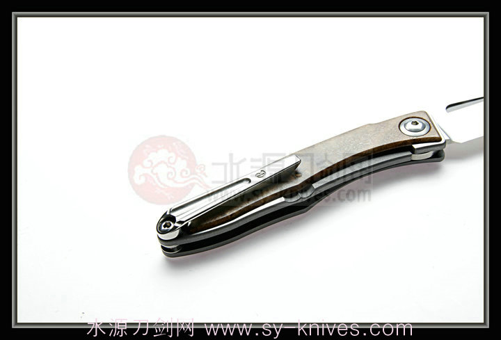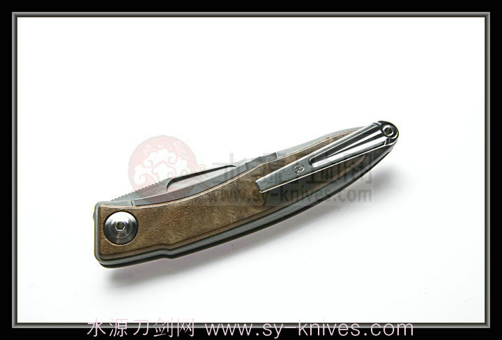 麦南迪刃柄内层与Sebenza一样是使用钛金属打造,故同样地使用专利的”Integral Lock”煌系统来锁定刃刃。刃背峰处会刻凿一条细而深的沟槽,方便拇指在开合刃时更好施力。背夹亦使用钛金属製,可依习惯拆装在不同位置。高档月桂木镶嵌显得高贵而素雅装,绝对称的上是完美的绅士折刃备!