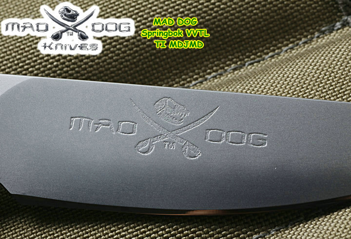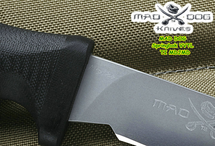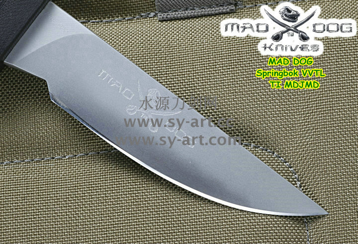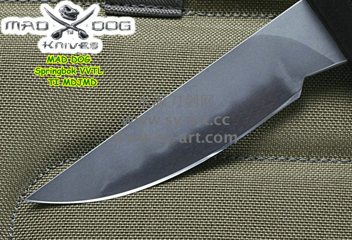 所有Mad Dog刃子及刃鞘系统都是以手工制作而成。Mad Dog钢材刃都是使用一种叫Starrett 496-O1的高碳工具钢,最独特的是它的热处理方式,先经过硬化(Hardened)然后再选择性回火(selectively tempered)而成。每个部分的热处理都不一样,刃锋部分的硬度是63-67HRC,在刃背部分则是50-55HRC,刃尖部分是59-61HRC,手柄部分48-52HRC,整刃分为4个部分处理,这种科学的方法成为分段热处理。这种方法可以使刃具既有很高的硬度又有较强的韧性,劈砍,穿刺,切割,撬砸等,能适应各种高强度工作。