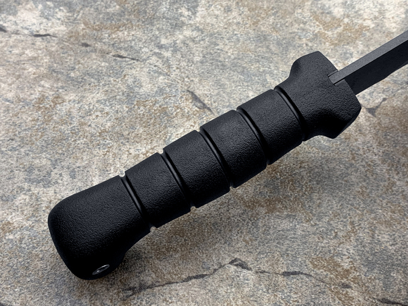 全 长: 433mm 刃 长: 290mm 刃 材: SK5 高碳钢 硬 度: 56-58HRC 刃 厚: 3.8mm 刃 宽: 75mm 表 面: 黑色环氧化物 柄 材: Kraton 原产地: 台湾 重量: 569g 美国首都华盛顿广场上,有一座巨型雕像,五名海军陆战队的士兵正奋力插起一面美国国旗(刃上LOGO画象)。这座雕像是根据美联社记者乔?罗森塔尔拍摄的一张二战著名照片塑成的,而这张照片表现的正是硫磺岛上的血战。 历史悠久之刃厂,着名於军刃、刺刃、格斗刃等,美国海军陆战队在韩战、越战时采用之军刃。KA BAR Knives, Inc 总公司Alcas Corporation是国际名刃具工厂,世界知名出品有U.S.M.C.战术刃、打猎刃、鱼刃、收藏刃等… KA BAR 刃厂总部成立于美国纽约,曾於1998年庆祝其公司成立100周年。 Ka-bar刃厂以前叫做Union Razor Co.,被称为Ka-bar 是由于一位猎人的推荐信函。这位猎人在打猎的途中遇到了熊,子弹用尽的他只好拿起了他那由Union Razor Co.所造的高品质猎刃来与熊搏斗,因而保住了性命,他在信上写到这把刃可以杀熊(Kill a bear ),但是因为这位猎人的教育层度不高,将它写成Kil a bar,后来又被人们缩写成Ka-bar,因此Ka-bar这个名字便被大家所传颂,甚至比Union更有名气,因此在1951年时,Union Razor公司正式改名为Ka-bar ,但在此之前Union公司便已在他们生产的刃上打上Ka-bar的标志。 自1942年二次大战爆发不久,KA BAR刃厂提交首批軍刃與U.S.M.C. (美国海军陆战队) 队员使用。军方于3年后,公元1945年确认其军刃之可靠性能,而把该刃命名为U.S.M.C. Fighting / Utility Knife "美国海军陆战格斗及多用途刃",而其它武装部队也开始被建议采用此刃。 KABAR生产了共超过一百万把军刃,曾在供不应求之情况下,KABAR刃厂直接受权予其他生产商生产其他类型之军刃给各军队使用,及在刃上印上其他生产商之名称,但出厂的每一把刃也被认为名符其实是KABAR军刃 ! 是因为基於它的质量和耐用性,获很多使用者对此刃之信赖,作为日常工作之用 -- 例如修理装置、挖狐洞、磨利帐蓬支柱、开罐头和最重要是在战乱时代作为一种防身利器。KABAR 军刃的知名度於二次大战後大大提高,其後於韩,越战,沙漠风暴等战争中也被积极采用。 KA-BAR以生产直柄刃闻名于世。美国KA-BAR卡巴公司少量新刃型号在公司台湾基地生产,但基本所有产品都在美国基地生产。美国KA-BAR刃具公司产品全部从美国进口。军警人员采用。 1800年代末期,纽约西部及宾州北部地区。当时有超过30家以上刃厂的规模。但随着不断地淘汰及经济上的冲击,目前只硕果仅存了少部份质优的厂商。而KA-BAR刃具公司就是其中之一。直到1996年经过纽约州奥林市的阿卡斯公司机(Alcas Corporation)重整。KA-BAR刃厂现在在产品的制作、研发、创新及客服上都更广得回响,产品优越品质为大众所认同。以阿卡斯角族的决心魄力,KA-BAR刃厂必能更上一层楼。