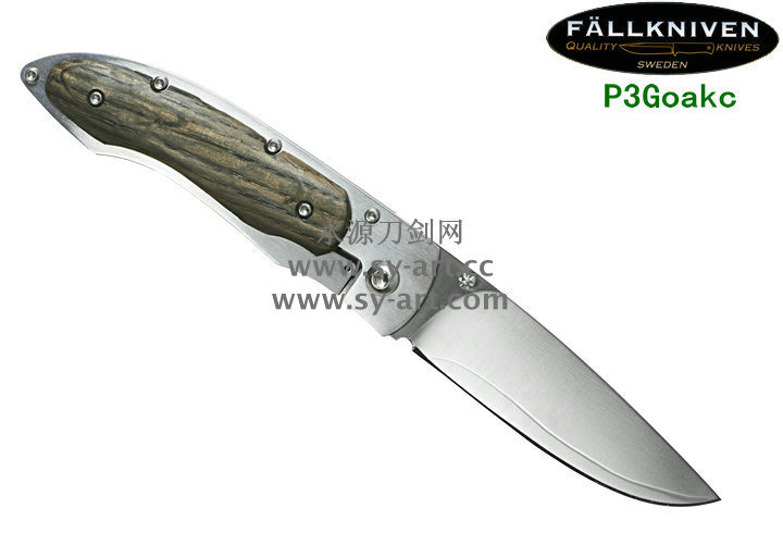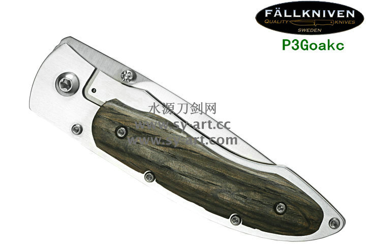 P3Goak is made of a very special handle material, namely sea drowned oak. There are logs from old dams that have been on the seabed for hundreds of years that we have salvaged. Besides the fact that it is completely dead as a material considered, it is a little darker than common oak and shifts in patterns in a very interesting way. To our knowledge this is the first time ever that sea drowned oak is used as a handle material for advanced folding knives. So, please enjoy this stunning, sharp, safe knife. A few drops of vegetable oil now and then gives it an increased shine. 3G钢 是由日本武生钢材公司制造的一种粉末合金(PM)钢,这被公认是一种卓越的制造厨刃的材质。也许很多朋友对这种钢材感到陌生,但提到其另外的名字可能大家会比较熟悉,那就是SG-2钢或SGPS,在Fallkniven公司的产品介绍中,SGPS钢的名字就屡屡出现。 从构成角度上来看,这种钢材类似于Super Gold钢。而旬(Shun)刃具公司在其高端产品线上也常采用SG-2钢,旬公司是这样形容该钢的:“SG2就像精美的丝绸一般,拥有极佳的刃部保持性并易于被再次打磨,这种合金拥有较高的密度,分子的颗粒结构更加均匀,没有缺陷或弱点。这种钢材我们可以处理到64HRC,而此时钢材还具有不错的弹性,即使锻造的刃具像纸张一样薄,也难以被破碎”。 从含铬角度上来看,SG2不锈钢是一种专利的“微碳化物”钢(并非碳化物含量少,而是颗粒微小)。其极端密集的颗粒结构和高纯度,让SG-2比普通的高性能钢材更硬、更柔韧,这种性能让所造刃具拥有无与伦比的性能和保持性。 碳:1.25%-1.45% 铬:14%-16% 锰:0.40% 钼:2.3%-3.3% 磷:0.03% 硫:0.03% 硅:0.50% 钒:1.8%-2.2%