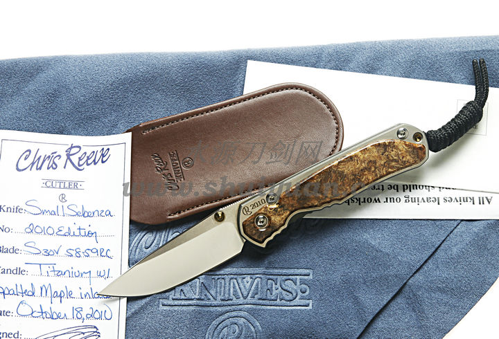 类 型: 折刃 型 号: Small Sebenza Limited Edition 2010 Spalted Maple Inlay全 长: 175mm 刃 长: 75mm闭合长度: 100mm 刃 材: S30V 表 面: 石洗+缎面硬 度: 58-59HRC刃 厚: 3mm柄 长: 100mm 柄 材: 钛金属6A14V+枫木贴片锁 型: 框架一体锁 重 量: 85g 原产地: 美国 2010年 年沙,限量60支。当chrisreeve完成了全钢一体刃的制作后,兴趣就转到如果把一体刃的坚固细致精神延续到一把Reeve折刃上。当chrisreeve看到线锁结构后,即对线索结构的简单实用而认可,又不能接受线锁过于薄弱。Reeve仔细分析了钢线锁存在的问题,一是钢线锁太厚会失去弹性而无法完成弯曲加锁的功能,二是钢线锁太厚解锁会很困难。找到了问题的症结,Reeve就着手选择可以避免上述问题的线锁材料,而钛合金正是最佳材料(6铝4钒钛合金90%Ti、 6%Al4%V、)。因为钛合金经过合适的热处理,具有很好的记忆性和弹性,能记忆确定弯曲的弧度,能很顺滑地完成加厚线锁上锁解锁这一概念的机械动作。但只加厚线锁Reeve并不满足,因为热处理后的钛合金硬度仍然不能和钢相比,于是Reeve还在钛锁片的顶端,镶嵌了超硬质合金,来确保线锁到达耐磨损的极限。这个小细节,是所有喜欢SEBENZA的朋友必须特别注意的,也是体会Reeve折刃过人之处的重点。但如果线锁加厚,手柄也会相应增厚,再加上贴片会更重。刚巧的是,钛合金本身只有同样体积钢的一半不到的重量。于是,Reeve索性将加厚线锁同手柄概念合二为一。整块钛合金加工成钛锁片加厚,同时修整出手柄的外形。这就是Reeve的伟大发明——一体式锁(Integral lock)。同时,钛合金也不会生锈。而且表面能缓慢产生的氧化层来覆盖以前的表面磨损。这个延续全钢一体刃坚韧细致概念的折刃设想,就这样由Reeve凭借自己认真的分析,合理的选材和创造性地设计而变为现实。这一切来的即美妙也很自然。直到今天,SEBENZA仍然是最坚固的折刃之冠。SEBENZA在Reeve家乡南非的祖鲁话里,是“工作”的意思。除了设计出最坚固的一体锁,Reeve还设计了最简单也最实用的矛形无假刃刃身。而且刃背被处理成圆滑,这在所有量产刃里是绝无仅有的,就凭这个细节,就能看出SEBENZA的细致之极。SEBENZA先后使用过ATS34,BG42,最后确定为S30V。 S30V有更好的防锈性能,更稳定的热处理效果,而且锋利保持度也是目前钢材里最好的一种。最后,Reeve以自己深厚的艺术修养和特殊的刃具审美感,修饰了SEBENZA手柄外形和及整体协调。这使得一把坚固的工作刃呈现出少有的绅士风范。即使在最正规的场合出现,SEBENZA一样显的幽雅而内敛。SEBENZA无论是配带在黑色礼服里,或是别在战术背心上,都是那么自然妥贴。而无论是开信封切雪茄,或是和敌人格斗,SEBENZA一样耐用、锋利和致命。最后,我们来总结一下SEBENZA。钛合金、加厚、硬质合金头这3点造就了最强壮的锁定。S30V、矛尖无假刃和圆顺的刃片,造就了最锋利和实用的刃身。最后自然流畅的外观线条,完成了这一切美感的升华。一把小刃,却能看到无限的风景。集大成于一只小小的、却又是如此幽雅平实的折刃。突破陈规、挑战极限,是Reeve最大的自豪。而伟大的设计也始终历久弥新。Chris Reeve 是手工刃界呼声最高的制刃师,以高水准的直柄刃和叫做Sebenza的边锁折刃而闻名于世,Sebenza具有一种独特的锁定装置,被称为Chris Reeve 整体锁。Chris Reeve来自南非的海港城市德班,从1975年开始制作手工刃,1984年成为一名职业刃匠。五年后,他做了一个自成为职业刃匠之后的最重大的决定:带着全副身家背井离乡来到美国,因为这里的发达的技术和信息可以令他的制刃技术如虎添翼。在离开南非之前,Chris Reeve已经积累了13年的刃具制造经验,这些从实践中学到的全面的技能无疑为他到美国之后的发展奠定了坚实的基础,使Chris Reeve刃具公司不同于大多数其他刃具公司的一点,就是刃的品质、表现和价值。Chris Reeve刃具都非常强劲而耐用,经过广泛地测试后才出厂。每把刃都具有独特的设计,采用顶级质量的钢材,用手工方法精工细作地制造而成。今天,Chris Reeve刃具仍然是小规模生产,Reeve将所有心血倾注在其设计中,并保证每一把Chris Reeve从离开爱达荷州博依西的商店那一刻起就享有终身免费保修,他对刃具的关怀并不仅止于出售时。对拥有Chris Reeve刃的原始顾客,不论他们用了多久,Reeve都会精心地为他们重新打磨,或为直柄刃重新作表面处理,这些服务都是免费或象征性地收一点。所以,Chris Reeve的顾客都能放心地使用他们的刃,并且能使刃具常年如新,不损收藏价值。很多买手工刃的人都认为产品的品质与刃匠的个人修养密不可分,在这方面Reeve是个真正的绅士,可以真正感受到他亲切和诚恳的个性,他对每个停在他的展台前的人都报以友好的微笑,详细地回答每个问题,再加上品质超群的产品,他简直算得上是制刃业的“超人”。