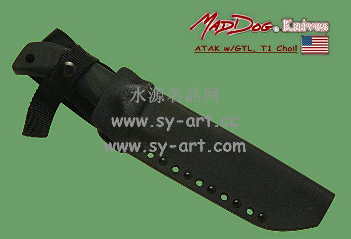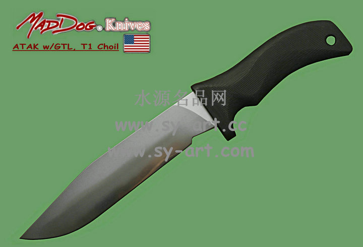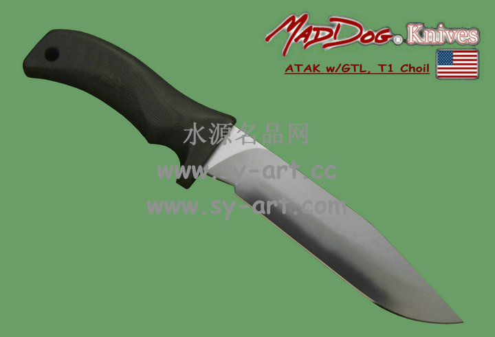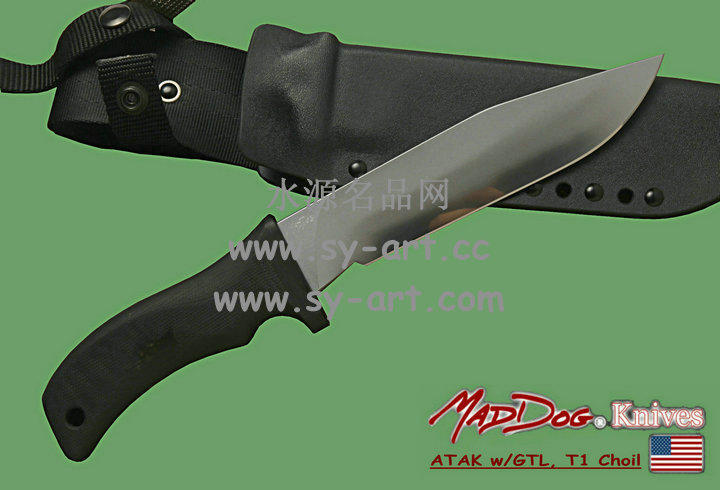 Mad Dog ATAK 疯狗——高级战术突击刃 除了完美之外,实在难以找到另一个词汇来形容Mad Dog Knives刃具。而ATAK更可说是Mad Dog Knives的成名刃。在1992年由西岸海豹部队所做的残酷测试中,ATAK是唯一一把通过测试的刃,测试的内容包括将刃夹在两片木片中,由体重约100公斤的海豹队员握住刃柄来做引体向上的动作,结果ATAK毫发无伤。ATAK是顶级藏家的选择,由于收藏者众,所以千金难求。