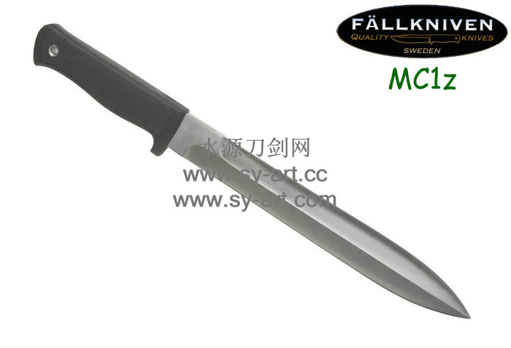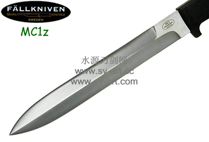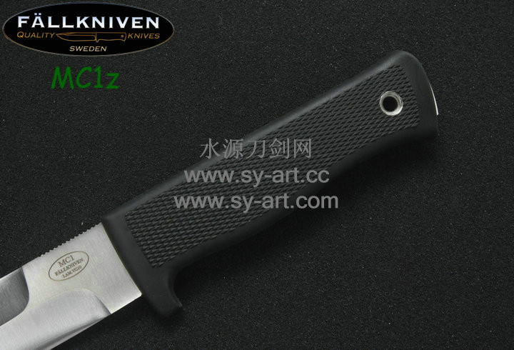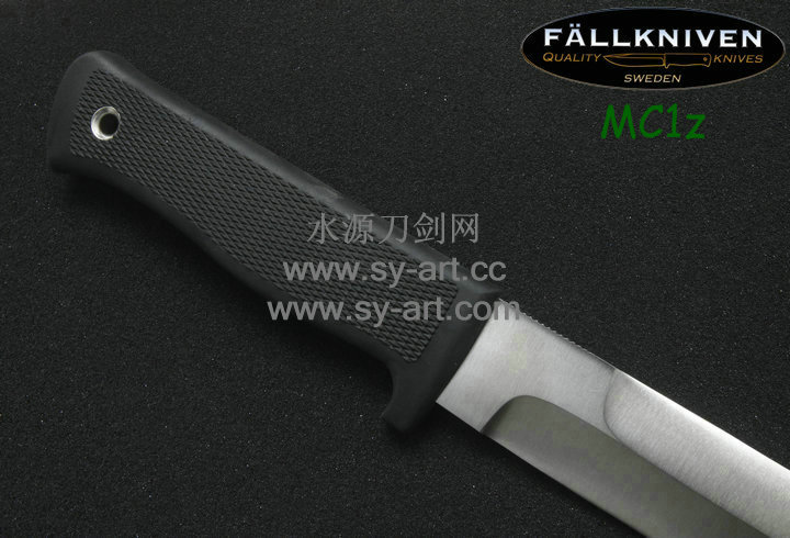 手柄材料是克拉通(Kraton),这种材料的特性是稳定,完全不受溶液、油和胺类物质腐蚀。和Fallkniven的许多型号一样,MC1采用全龙骨等宽柄芯设计,可以在手柄末端看到。MC1是应欧洲军方要求设计生产,并在2002年春季起被军队装备使用。