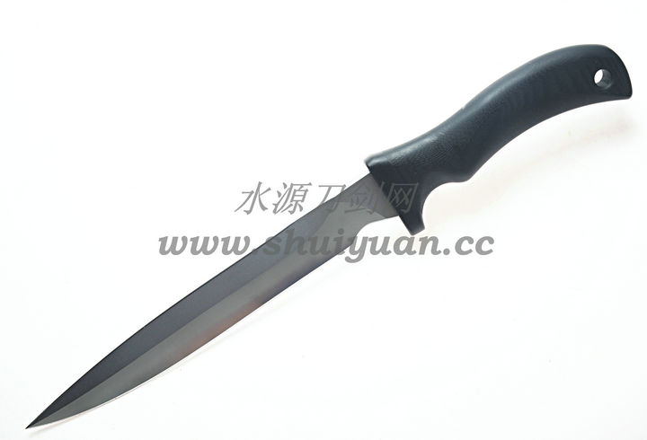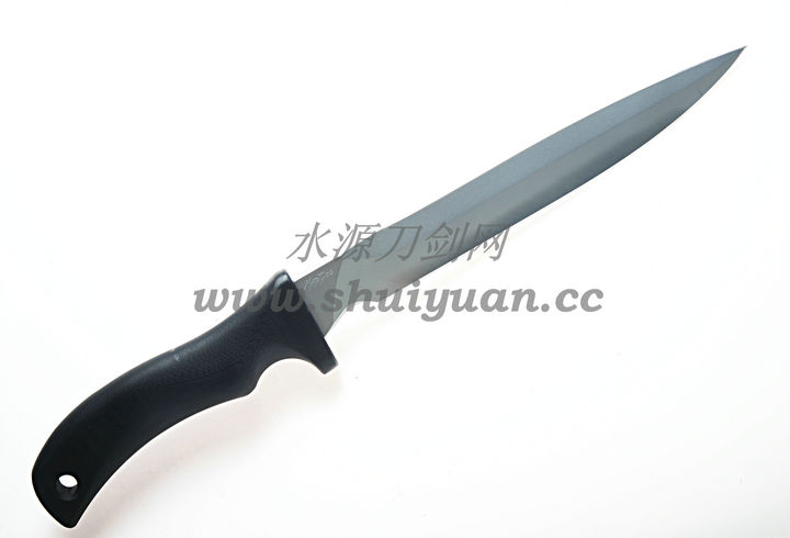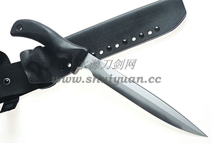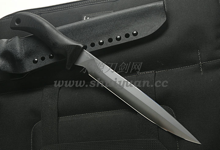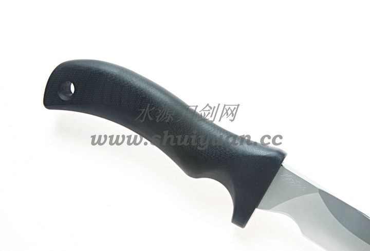 Mad Dog刃具的手柄都经过人体功能学设计,形状独特,把握极其舒适称手。它的食指凹槽让使用者即使看不见也能凭手感找到握刃的位置。手柄材料是一种不公开的黑色环氧玻璃,可承受极高压力和高温,这种材料可以轻易地承受 .45口径枪子弹的冲击,而且几乎不被化学溶剂腐蚀。全隐藏式柄芯,确保使用者在工作时不会触电。
