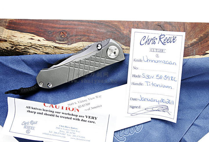 Chris Reeve 是手工刃界呼声最高的制刃师,以高水准的直柄刃和叫做Sebenza的边锁折刃而闻名于世,Sebenza具有一种独特的锁定装置,被称为Chris Reeve 整体锁。Chris Reeve来自南非的海港城市德班,从1975年开始制作手工刃,1984年成为一名职业刃匠。五年后,他做了一个自成为职业刃匠之后的最重大的决定:带着全副身家背井离乡来到美国,因为这里的发达的技术和信息可以令他的制刃技术如虎添翼。在离开南非之前,Chris Reeve已经积累了13年的刃具制造经验,这些从实践中学到的全面的技能无疑为他到美国之后的发展奠定了坚实的基础,使Chris Reeve刃具公司不同于大多数其他刃具公司的一点,就是刃的品质、表现和价值。Chris Reeve刃具都非常强劲而耐用,经过广泛地测试后才出厂。每把刃都具有独特的设计,采用顶级质量的钢材,用手工方法精工细作地制造而成。今天,Chris Reeve刃具仍然是小规模生产,Reeve将所有心血倾注在其设计中,并保证每一把Chris Reeve从离开爱达荷州博依西的商店那一刻起就享有终身免费保修,他对刃具的关怀并不仅止于出售时。对拥有Chris Reeve刃的原始顾客,不论他们用了多久,Reeve都会精心地为他们重新打磨,或为直柄刃重新作表面处理,这些服务都是免费或象征性地收一点。所以,Chris Reeve的顾客都能放心地使用他们的刃,并且能使刃具常年如新,不损收藏价值。很多买手工刃的人都认为产品的品质与刃匠的个人修养密不可分,在这方面Reeve是个真正的绅士,可以真正感受到他亲切和诚恳的个性,他对每个停在他的展台前的人都报以友好的微笑,详细地回答每个问题,再加上品质超群的产品,他简直算得上是制刃业的“超人”。