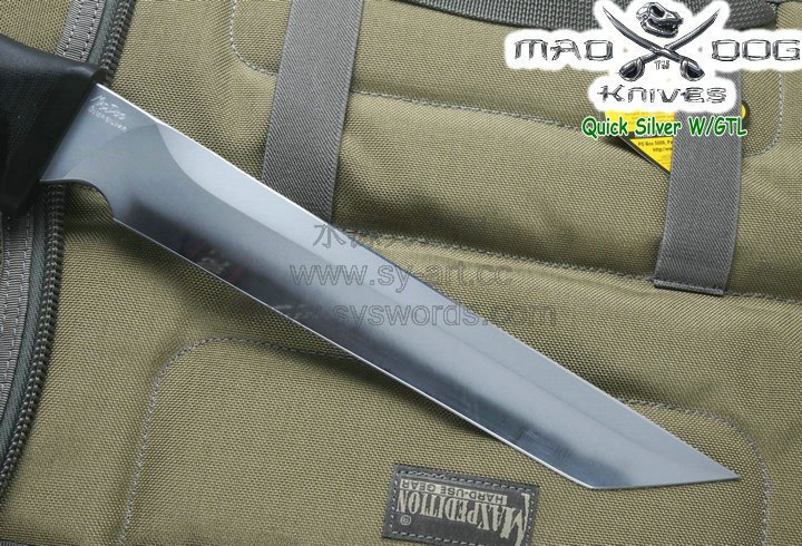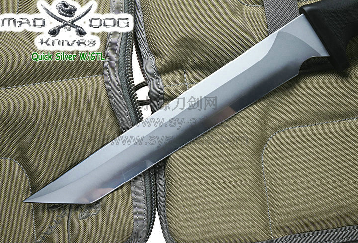 Mad Dog 刃具使用 Starrett 496-01 高碳工具钢,经过非常专业的淬水-挤压-回火热处理流程,使每片刃刃达到理想的层变硬度:刃锋硬度为HRC62-63,具有非常出色的刃锋保持性;而刃尖、刃脊和柄芯的硬度则在HRC50-54,保持良好的弹性,防止刃尖折断,并且增强了刃刃的韧性。除此之外,所有的刃刃都经过电镀处理,加上厚厚一层坚硬的铬合金,具有很强的抗腐蚀和磨损能力。