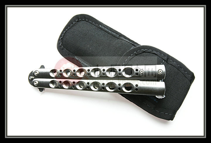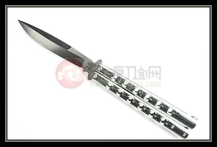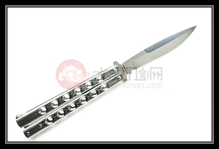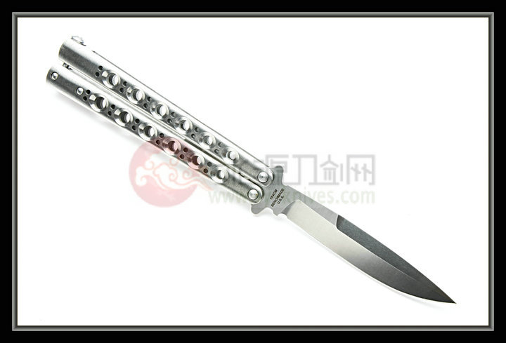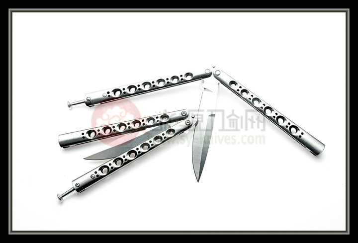 蝴蝶甩刃起源于菲利宾,菲律宾蝴蝶甩刃(balisong)是Kali最古老的武器之一,是马来亚-玻利尼西亚格斗系统的祖传技艺。这一技艺被认为是世界上最致命的格斗系统。蝴蝶刃应归于非典型折刃,典型折刃是指常见的口袋型折叠刃。蝴蝶刃本身虽然是一个古老的概念,但就其外形及功能来说,真算的是很精巧。它完全消除了对刃鞘的需求。它可以方便安全的收为一半的长度,刃柄有着双重作用,既是刃鞘,也可以通过旋转组成一个坚固的手柄。蝴蝶刃是对典型折刃的一种改进,因为它可以用一只手打开。另外,突起的刃柄可以提供保护,防止手滑到刃锋上。多年以来刃具刃材一直使用碳钢,原因是易于打磨开锋。但是碳钢却很容易生锈失去光泽。于是便出现了不锈钢刃材,它可以保持良好的外观,却难以打磨及保持锋利。现在,绝大多数的刃具都以高碳不锈钢制成,它结合了碳钢易开锋和不锈钢易保养不生锈的特性。