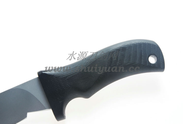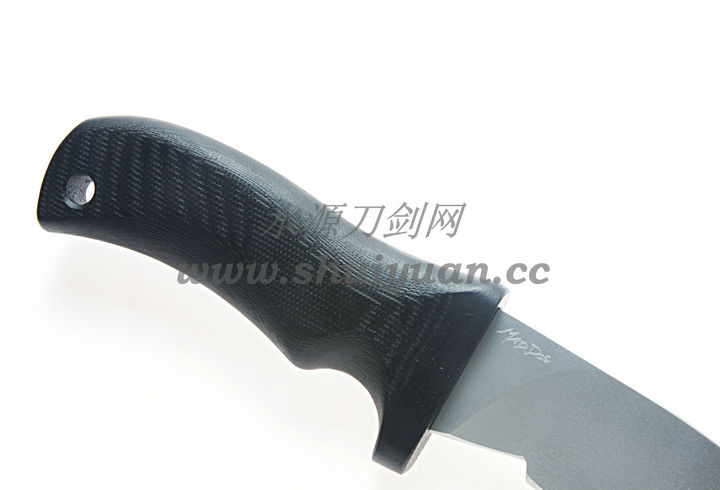 Mad Dog刃具的手柄都经过人体功能学设计,形状独特,把握极其舒适称手。它的食指凹槽让使用者即使看不见也能凭手感找到握刃的位置。手柄材料是一种不公开的黑色环氧玻璃,可承受极高压力和高温,这种材料可以轻易地承受 .45口径枪子弹的冲击,而且几乎不被化学溶剂腐蚀。全隐藏式柄芯,确保使用者在工作时不会触电。