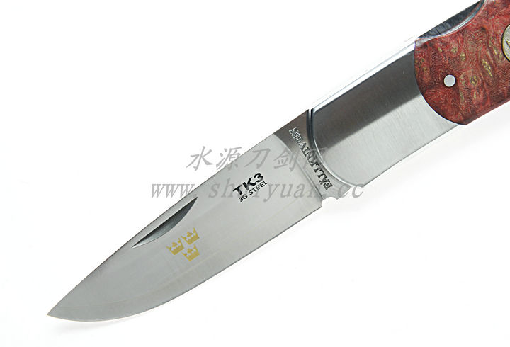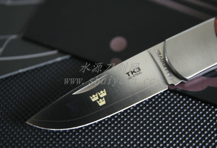 | 类 型: | 折刃 | | 型 号: | FK-TK3RG | | 全 长: | 165mm | | 刃 长: | 70mm | | 闭合长度: | 97mm | | 刃 材: | 3G(核心是超级金粉钢,外层覆盖VG2) | | 硬 度: | 62HRC | | 表 面: | 缎面处理 | | 刃 厚: | 2.5mm | | 柄 长: | 97mm | | 柄 材: | 402J2+红苹果木 | | 锁 型: | 背锁 | | 重 量: | 100g | | 原产地: | 瑞典 | Fallkniven TK3属于Tre Kronor系列,是一款优秀的绅士折刃!使用3G钢材,其核心为超级金粉钢,外包VG2,硬度达到62HRC。这在折刃中是极为罕见的。TK3的刃柄质轻而坚硬,且耐腐蚀。刃上带有三王冠——瑞典的标志。 来自瑞典的FALLKNIVEN刃厂是一家真正的家族企业,创办于1984年, 近二十年来以生产高质量猎刃和渔刃而享誉北欧,这家瑞典公司为每一位需要的用户提供耐用的野外刃具!是公认的瑞典首席刃厂。从1984年开始自行设计和生产刃具,产品线扩展到生存、野外、甚至军方刃具领域,该厂一直为瑞典空军提供生存刃具,尤其以F1型号最为著名。自1998年一本刃具界的知名杂志,你都会看到他们的产品——刃刃上印着十分醒目的F.AB SWEDEN,和VG-10,这是FALLKNIVEN最喜欢选用的刃材钢。 这家瑞典公司为每一位需要的用户提供耐用的野外刃具! F1 是 Fallkniven 最早提供的生存刃,是为瑞典空军设计生产的。刃型采用 Loveless 水滴尖,同时也是一把非常出色的猎刃。F1有两个款式:抛光的和特氟龙涂层的,也都可以选配皮革鞘或Kydex鞘。H1 猎刃,G1 GARM 靴刃,和F2 渔刃。F2 和 H1都是野外用的全能刃具,GARM则相对专业一些,是执法人员首选的防身武器。S1 丛林刃,非常出色的野外用刃和生存刃。A1 则更适合军方,或重型求生用途。两个型号都有抛光或特氟龙涂层款式供选,也都可以选配皮革鞘或Kydex鞘。WM-1 的每一个款式都是当今市场上最畅销的颈刃,对那些不相信折刃线锁的人来说,它是最佳的替代品。 Fallkniven 的直鞘刃体现出北欧风格的大气和对高品质的不懈追求。几乎所有产品都以非常昂贵的VG-10高级不锈钢作为刃材,经过全面的淬水处理,具有极高的硬度、韧性和抗磨损能力。同时,Fallkniven坚持每把刃都是全龙骨等宽柄芯,使刃刃和刃柄浑然一体,绝不吝啬原料来损害刃的坚固和力度。 Fallkniven 近年来为多个知名型号都提供黑色特氟龙涂层款式,这不是为了好看——涂层可以保护刃刃部首腐蚀,并减少意外反光。当在海水等盐碱度较高的环境下使用时,涂层能够起到很好的保护作用。但要注意的时,虽然可以在一定限度上提高抗磨损能力,但特氟龙涂层并不能永久保留,也会被划伤,甚至剥落。 "