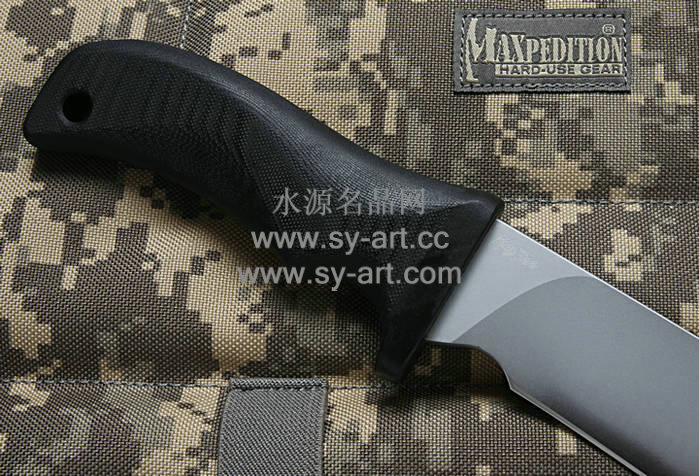 Mad Dog刃具的手柄都经过人体功能学设计,形状独特,把握极其舒适称手。它的食指凹槽让使用者即使看不见也能凭手感找到握刃的位置。手柄材料是一种不公开的黑色环氧玻璃,可承受极高压力和高温,这种材料可以轻易地承受 .45口径枪子弹的冲击,而且几乎不被化学溶剂腐蚀。全隐藏式柄芯,确保使用者在工作时不会触电。