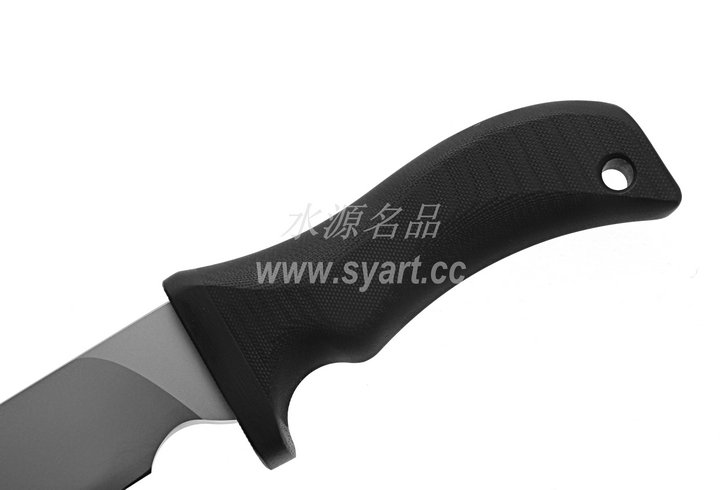 Mad Dog刃具的手柄都经过人体功能学设计,形状独特,把握极其舒适称手。它的食指凹槽让使用者即使看不见也能凭手感找到握刃的位置。手柄材料是一种不公开的黑色环氧玻璃,可承受极高压力和高温,这种材料可以轻易地承受 .45口径枪子弹的冲击,而且几乎不被化学溶剂腐蚀。全隐藏式柄芯,确保使用者在工作时不会触电。