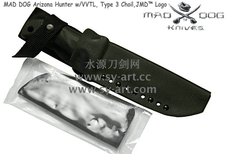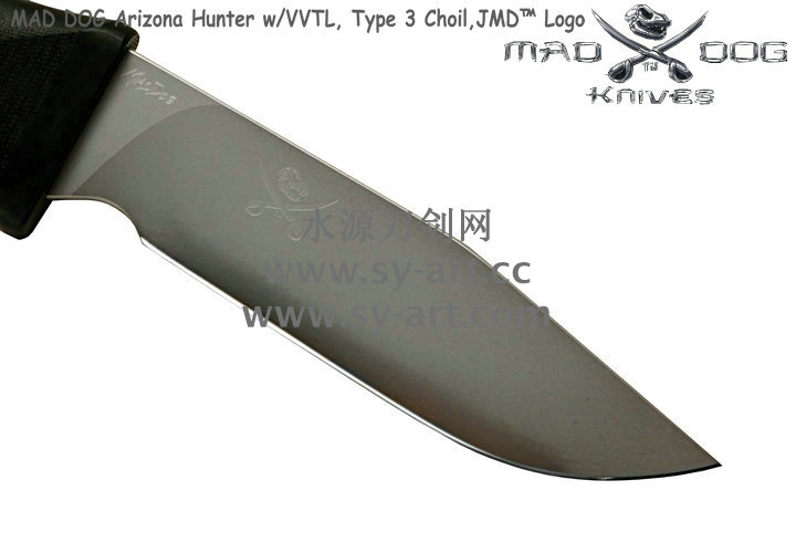 Mad Dog 刃具使用 Starrett 496-01 高碳工具钢,经过非常专业的淬水-挤压-回火热处理流程,使每片刃刃达到理想的层变硬度:刃锋硬度为HRC62-63,具有非常出色的刃锋保持性;而刃尖、刃脊和柄芯的硬度则在HRC50-54,保持良好的弹性,防止刃尖折断,并且增强了刃刃的韧性。除此之外,所有的刃刃都经过电镀处理,加上厚厚一层坚硬的铬合金,具有很强的抗腐蚀和磨损能力。