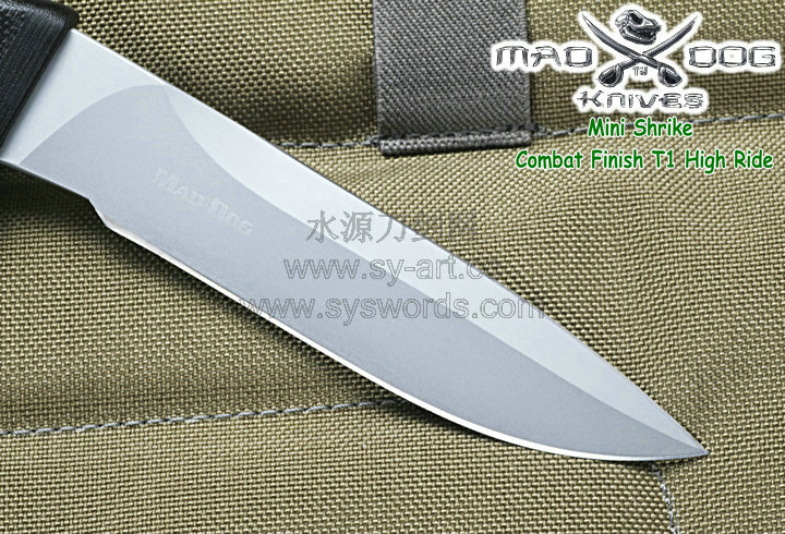 所有Mad Dog刃子及刃鞘系统都是以手工制作而成。Mad Dog钢材刃都是使用一种叫Starrett 496-O1的高碳工具钢,最独特的是它的热处理方式,先经过硬化(Hardened)然后再选择性回火(selectively tempered)而成。每个部分的热处理都不一样,刃锋部分的硬度是63-67HRC,在刃背部分则是50-55HRC,刃尖部分是59-61HRC,手柄部分48-52HRC,整刃分为4个部分处理,这种科学的方法成为分段热处理。这种方法可以使刃具既有很高的硬度又有较强的韧性,劈砍,穿刺,切割,撬砸等,能适应各种高强度工作。