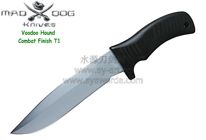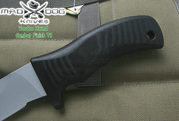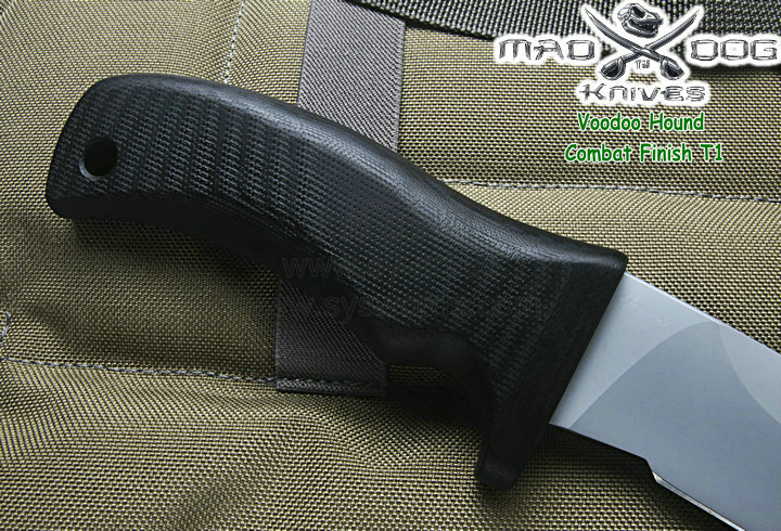 它的手柄符合人体工程学设计,把握极其舒适称手。食指凹槽让使用者即使看不见也能凭手感找到握刃的位置。材料使用特殊的玻璃纤维与环氧基树脂合成来做刃的握柄。此种特殊材质每一平方英寸可承受79000磅的压力(约3600公斤),可以轻易地承受0.45口径子弹的冲击。因此Mad Dog刃的握柄就算很严苛的使用也不会造成损害。此种握柄材质同时也提供了极好的绝缘,每0.001吋可承受1000伏特的电压,因而可以保护持刃者不会在使用刃具时遭受电击。另外这种握柄材质也几乎不受化学物质的渗透及侵蚀。