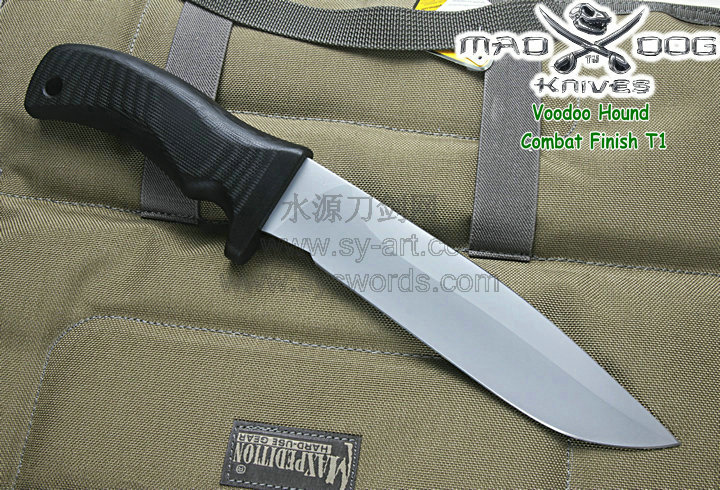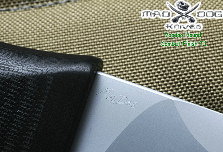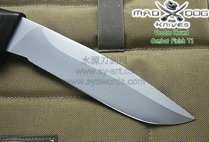 所有Mad Dog刃子及刃鞘系统都是以手工制作而成。Mad Dog钢材刃都是使用一种叫Starrett 496-O1的高碳工具钢,最独特的是它的热处理方式,先经过硬化(Hardened)然后再选择性回火(selectively tempered)而成。每个部分的热处理都不一样,刃锋部分的硬度是63-67HRC,在刃背部分则是50-55HRC,刃尖部分是59-61HRC,手柄部分48-52HRC,整刃分为4个部分处理,这种科学的方法成为分段热处理。这种方法可以使刃具既有很高的硬度又有较强的韧性,劈砍,穿刺,切割,撬砸等,能适应各种高强度工作。
