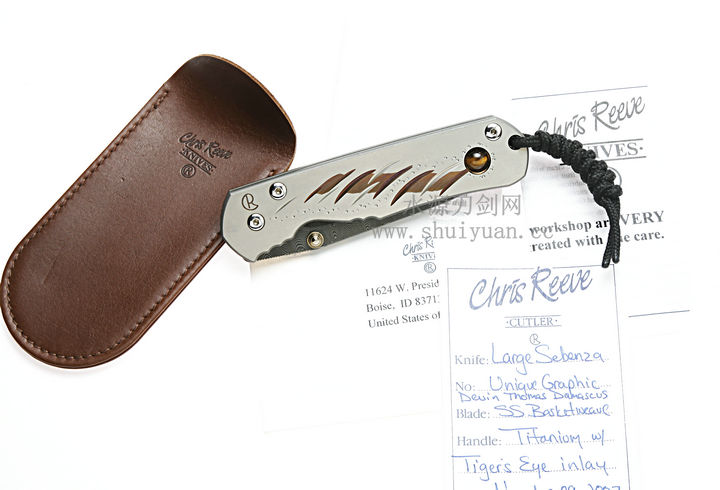类 型: 折刃 型 号: 沙本沙大马雕花镶嵌版 全 长: 212mm 刃 长: 92mm 闭合长度: 120mm 刃 材: 网篮托马斯大马士革 表 面: 酸洗 硬 度: 59-60HRC 刃 厚: 3.175mm 柄 长: 120mm 柄 材: 钛金属6A14V+雕花+虎眼石镶嵌 锁 型: 框架一体锁 重 量: 134g 原产地: 美国 当chrisreeve完成了全钢一体刃的制作后,兴趣就转到如果把一体刃的坚固细致精神延续到一把Reeve折刃上。当chrisreeve看到线锁结构后,即对线索结构的简单实用而认可,又不能接受线锁过于薄弱。Reeve仔细分析了钢线锁存在的问题,一是钢线锁太厚会失去弹性而无法完成弯曲加锁的功能,二是钢线锁太厚解锁会很困难。找到了问题的症结,Reeve就着手选择可以避免上述问题的线锁材料,而钛合金正是最佳材料(6铝4钒钛合金90%Ti、 6%Al4%V、)。因为钛合金经过合适的热处理,具有很好的记忆性和弹性,能记忆确定弯曲的弧度,能很顺滑地完成加厚线锁上锁解锁这一概念的机械动作。但只加厚线锁Reeve并不满足,因为热处理后的钛合金硬度仍然不能和钢相比,于是Reeve还在钛锁片的顶端,镶嵌了超硬质合金,来确保线锁到达耐磨损的极限。这个小细节,是所有喜欢SEBENZA的朋友必须特别注意的,也是体会Reeve折刃过人之处的重点。 但如果线锁加厚,手柄也会相应增厚,再加上贴片会更重。刚巧的是,钛合金本身只有同样体积钢的一半不到的重量。于是,Reeve索性将加厚线锁同手柄概念合二为一。整块钛合金加工成钛锁片加厚,同时修整出手柄的外形。这就是Reeve的伟大发明——一体式锁(Integral lock)。同时,钛合金也不会生锈。而且表面能缓慢产生的氧化层来覆盖以前的表面磨损。 这个延续全钢一体刃坚韧细致概念的折刃设想,就这样由Reeve凭借自己认真的分析,合理的选材和创造性地设计而变为现实。这一切来的即美妙也很自然。直到今天,SEBENZA仍然是最坚固的折刃之冠。 SEBENZA在Reeve家乡南非的祖鲁话里,是“工作”的意思。除了设计出最坚固的一体锁,Reeve还设计了最简单也最实用的矛形无假刃刃身。而且刃背被处理成圆滑,这在所有量产刃里是绝无仅有的,就凭这个细节,就能看出SEBENZA的细致之极。SEBENZA先后使用过ATS34,BG42,最后确定为S30V。 S30V有更好的防锈性能,更稳定的热处理效果,而且锋利保持度也是目前钢材里最好的一种。 最后,Reeve以自己深厚的艺术修养和特殊的刃具审美感,修饰了SEBENZA手柄外形和及整体协调。这使得一把坚固的工作刃呈现出少有的绅士风范。即使在最正规的场合出现,SEBENZA一样显的幽雅而内敛。SEBENZA无论是配带在黑色礼服里,或是别在战术背心上,都是那么自然妥贴。而无论是开信封切雪茄,或是和敌人格斗,SEBENZA一样耐用、锋利和致命。 最后,我们来总结一下SEBENZA。钛合金、加厚、硬质合金头这3点造就了最强壮的锁定。S30V、矛尖无假刃和圆顺的刃片,造就了最锋利和实用的刃身。最后自然流畅的外观线条,完成了这一切美感的升华。一把小刃,却能看到无限的风景。 集大成于一只小小的、却又是如此幽雅平实的折刃。突破陈规、挑战极限,是Reeve最大的自豪。而伟大的设计也始终历久弥新。 Chris Reeve 是手工刃界呼声最高的制刃师,以高水准的直柄刃和叫做Sebenza的边锁折刃而闻名于世,Sebenza具有一种独特的锁定装置,被称为Chris Reeve 整体锁。Chris Reeve来自南非的海港城市德班,从1975年开始制作手工刃,1984年成为一名职业刃匠。五年后,他做了一个自成为职业刃匠之后的最重大的决定:带着全副身家背井离乡来到美国,因为这里的发达的技术和信息可以令他的制刃技术如虎添翼。在离开南非之前,Chris Reeve已经积累了13年的刃具制造经验,这些从实践中学到的全面的技能无疑为他到美国之后的发展奠定了坚实的基础,使Chris Reeve刃具公司不同于大多数其他刃具公司的一点,就是刃的品质、表现和价值。Chris Reeve刃具都非常强劲而耐用,经过广泛地测试后才出厂。每把刃都具有独特的设计,采用顶级质量的钢材,用手工方法精工细作地制造而成。今天,Chris Reeve刃具仍然是小规模生产,Reeve将所有心血倾注在其设计中,并保证每一把Chris Reeve从离开爱达荷州博依西的商店那一刻起就享有终身免费保修,他对刃具的关怀并不仅止于出售时。对拥有Chris Reeve刃的原始顾客,不论他们用了多久,Reeve都会精心地为他们重新打磨,或为直柄刃重新作表面处理,这些服务都是免费或象征性地收一点。所以,Chris Reeve的顾客都能放心地使用他们的刃,并且能使刃具常年如新,不损收藏价值。很多买手工刃的人都认为产品的品质与刃匠的个人修养密不可分,在这方面Reeve是个真正的绅士,可以真正感受到他亲切和诚恳的个性,他对每个停在他的展台前的人都报以友好的微笑,详细地回答每个问题,再加上品质超群的产品,他简直算得上是制刃业的“超人”。