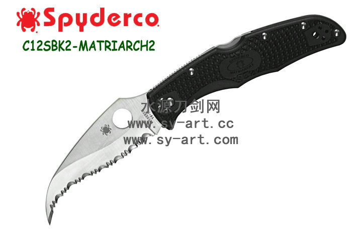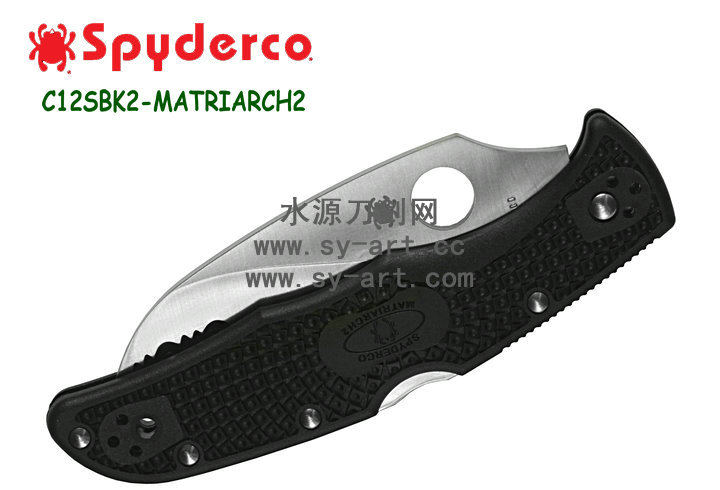 类 型: 折刃 型 号: C12SBK2 全 长: 213 mm 刃 长: 90 mm 闭合长度: 127 mm 刃 材: VG-10 硬 度: 60-62HRC 表 面: 缎面处理 刃 厚: 3mm 柄 长: 127 mm 柄 材: G-10 锁 型: 背锁 重 量: 100 g 原产地: 美国 日本SEKI代工 The original Spyderco Matriarch was inspired by a request from our South African distributor for a more economical version of the Civilian. The Matriarch2 is the latest expression of that concept, combining the Civilian’s aggressive blade shape and Reverse “S” edge profile with the lightweight handle construction of the best-selling Endura4. The result is a knife that provides extreme cutting performance in a convenient, lightweight package. Its SpyderEdge VG-10 stainless steel blade is scientifically designed to maximize cutting performance and its sturdy back lock mechanism, four-position clip, and Trademark Round Hole ensure unmatched carry versatility and high-speed deployment with either hand. Offering completely ambidextrous operation, the Matriarch2 features a four-position clip, a sturdy back lock mechanism, skeletonized stainless steel liners, and a Bi-Directional-Textured? fiberglass-reinforced-nylon handle.