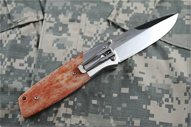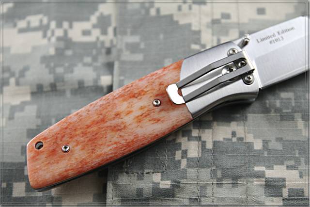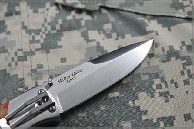类 型: 折刃 型 号: PXLccos-1013 全 长: 199mm 刃 长: 88mm 刃 材: COS(钴合金) 三层夹钢 硬 度: 62HRC 表 面: 缎面处理 刃 厚: 3.5mm 闭合长度: 111mm 柄 材: 染色驼骨 重 量: 176g 原产地: 瑞典 We’re happy to present a small test series of our largest folding knife, the PXL, believing that collectors will enjoy having a sample of this very special version in their collection. We have kept a few within our company and around 25 pc only are released for sale. Blade We’re the first company in the world to use a laminate Cobalt Special alloy steel and, thru our tests, we have found that it is keeping an edge very well, better than the remarkable VG10. Handle Made in dense, dyed camel bone, the handle shows a variation in colors we’ve never seen before, making every sample a unique folding knife. Since bone is a natural material, it’s impossible to avoid small cracks so, such flaws are not covered by any warranty. Serial number Each knife has got its own laser engraved serial number, very important to collectors. These PXL knives can only be bought thru the internet. 全球限量25把,刃片采用钴合金三层夹钢,经过测试该刃材在硬度 韧性 保持性方面都比VG-10要强很多,并且采用染色驼骨为柄材,每一把都是不同的。每把刃都有独立的编号,是您收藏与使用的上上之选。