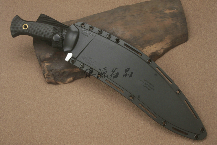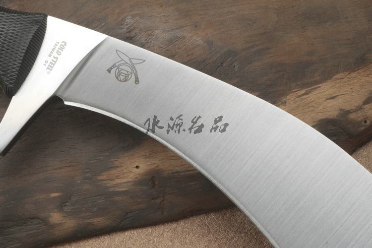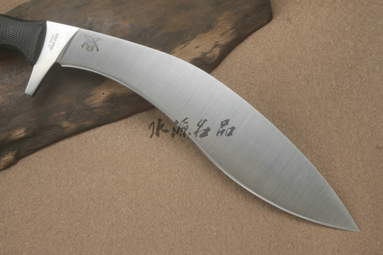 廓尔喀大弯刃拥有极高评价!此系列系受到希腊罗马所用大刃的影响而产生,这两种刃皆以拥有强大的砍劈能力而者称,现在Cold Steel 结合希腊Kopis 刃和罗马的Machaira 大刃的特色,生产了廓尔喀大弯刃(Kukri)系列。编号39LGKT 廓尔喀大弯刃使用O-1钢 高硬度碳钢打造。格纹状的Kraton材质把手,具防滑作用。