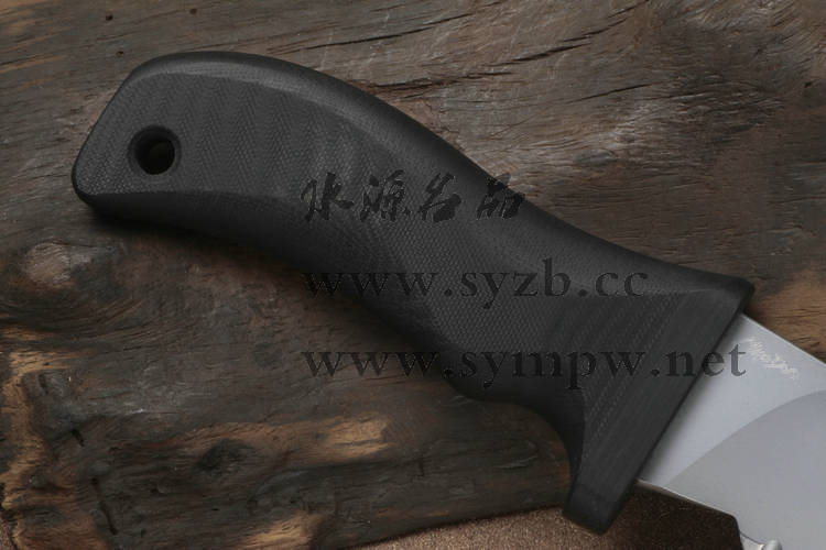 它的手柄符合人体工程学设计,把握极其舒适称手。食指凹槽让使用者即使看不见也能凭手感找到握刃的位置。材料使用特殊的玻璃纤维与环氧基树脂合成来做刃的握柄。此种特殊材质每一平方英寸可承受79000磅的压力(约3600公斤),可以轻易地承受0.45口径子弹的冲击。因此Mad Dog刃的握柄就算很严苛的使用也不会造成损害。此种握柄材质同时也提供了极好的绝缘,每0.001吋可承受1000伏特的电压,因而可以保护持刃者不会在使用刃具时遭受电击。另外这种握柄材质也几乎不受化学物质的渗透及侵蚀。