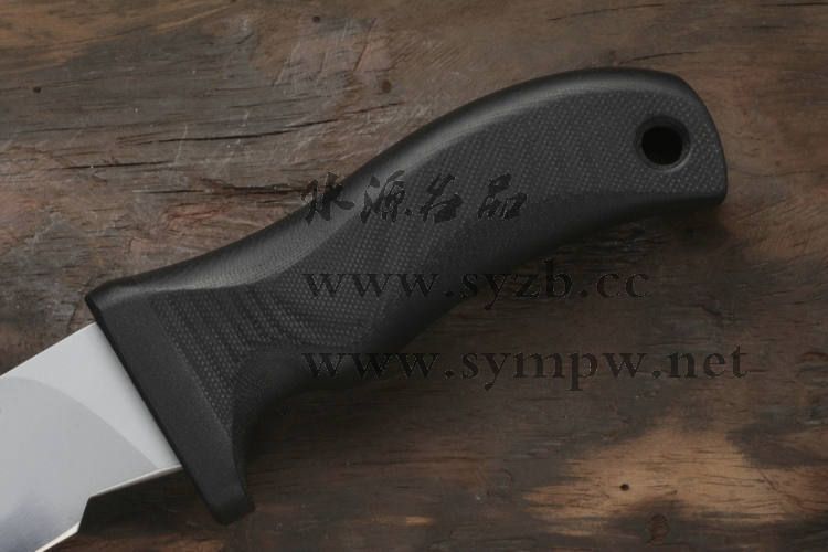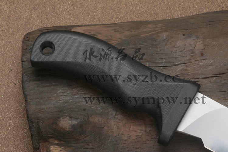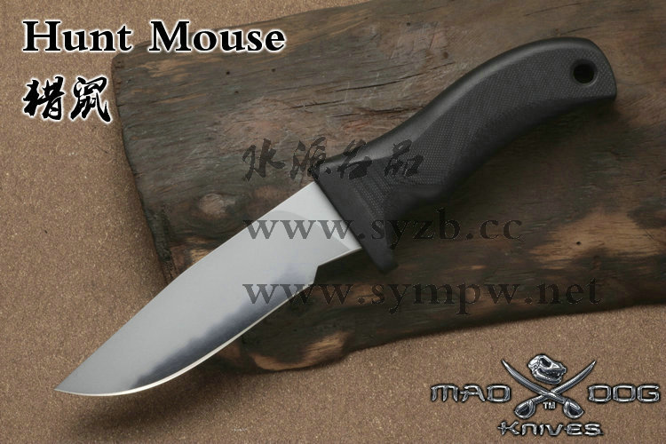 它的手柄符合人体工程学设计,把握极其舒适称手。食指凹槽让使用者即使看不见也能凭手感找到握刃的位置。材料使用特殊的玻璃纤维与环氧基树脂合成来做刃的握柄。此种特殊材质每一平方英寸可承受79000磅的压力(约3600公斤),可以轻易地承受0.45口径子弹的冲击。因此Mad Dog刃的握柄就算很严苛的使用也不会造成损害。此种握柄材质同时也提供了极好的绝缘,每0.001吋可承受1000伏特的电压,因而可以保护持刃者不会在使用刃具时遭受电击。另外这种握柄材质也几乎不受化学物质的渗透及侵蚀。