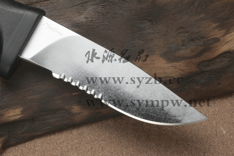 所有Mad Dog刃子及刃鞘系统都是以手工制作而成。Mad Dog钢材刃都是使用一种叫Starrett 496-O1的高碳工具钢,最独特的是它的热处理方式,先经过硬化(Hardened)然后再选择性回火(selectively tempered)而成。每个部分的热处理都不一样,刃锋部分的硬度是63-67HRC,在刃背部分则是50-55HRC,刃尖部分是59-61HRC,手柄部分48-52HRC,整刃分为4个部分处理,这种科学的方法成为分段热处理。这种方法可以使刃具既有很高的硬度又有较强的韧性,劈砍,穿刺,切割,撬砸等,能适应各种高强度工作。