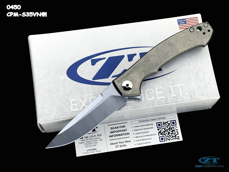 0454是ZT公司与著名刃匠Dmitry Sinkevich的一款屡获殊荣的限量版折刃,产品少价格高,今年ZT公司推出了更紧凑的版本0450。