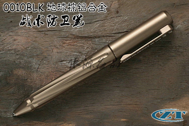 类 型: 战术防卫笔 型 号: 0010EB 全 长: 135mm 材 质: 6061-T6 aircraft aluminum 航空铝合金 重 量: 36.9g 产 地: 美国 ZT 零误差 战术笔是一个隐蔽的自卫工具,在关键时刻他可以为你挺身而出。 这款战术笔具有坚固的3D雕刻螺旋槽。笔盖部位有O型圈可以帮助保持笔芯水分散失。笔尖配备玻璃粉碎器(打击头)可以轻易击碎玻璃或作为自由防御工具以防意外的外来攻击。 然后大多时候,ZT战术笔只是一个漂亮的书写工具,配备美国Fisher笔芯,该笔芯最初被设计用来在太空中写字。气压式推动,不依靠重力,可以倒立书写、在无重力环境中书写,同时可以在水中、潮湿表面书写。 飞梭太空笔Fisher Space Pen 由费谢尔先生于1948年成立,起名飞梭太空笔公司(FISHER SPACE PEN CO.)作为一个处事严谨的工程师,精确可靠是他一生的追求。为了制造不漏油,不褪色的高质量圆珠笔,他采用了最好的材料,用27道工序来制造一个小小的圆珠笔尖,从而解决了圆珠笔的漏油问题,又保证了流畅可靠的书写功能。 当人类进入了太空时代以后,由于太空的失重等特殊环境。当时的宇航员只能用铅笔写字,由于一次失火的事故,造成两名宇航员丧命,费谢尔马上意识到应该制造一种可以在太空失重状态下书写且绝不漏油的笔。在没有任何政府援助的情况下,他自投资金200多万美元,把自己的样品送去美国宇航局作了上万次试验试用。最终,在1967年发明出了供宇航员在太空使用的AG7型太空笔。从此飞梭太空笔成了各国宇航局和宇航员的必备书写工具。 具有密封气压式笔芯的飞梭太空笔之所以被美国宇航员选为每次太空飞行用笔,是因为太空笔是世界上唯一可以在失重状态、零下60度、高温200度的太空条件下满意地进行书写的工具。太空笔不断被宇航员用来进行太空飞行,甚至登月时也带着它。太空笔同时也被俄罗斯宇航局买来用作他们的宇航员在太空中的书写用笔。充氮的太空笔芯,其中的油墨在5~6个大气压力的情况下灌进笔芯。飞梭太空笔能以任何角度书写,甚至倒着写。 旋转的碳化钨笔尖使得触变性的油墨变成流体,因此飞梭太空笔可以可靠而流畅地在许多表面上进行书写,甚至在水下。 我们相信太空笔是世界上书写最流利、最可靠的书写工具。