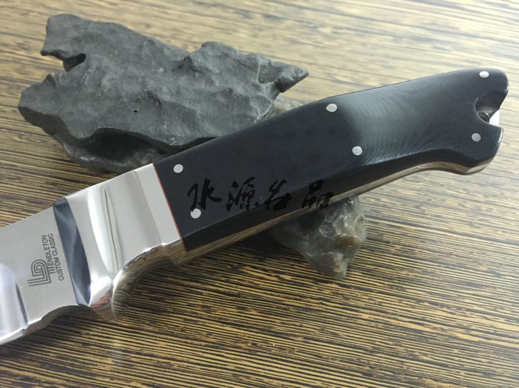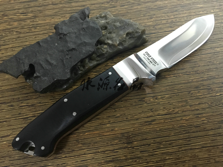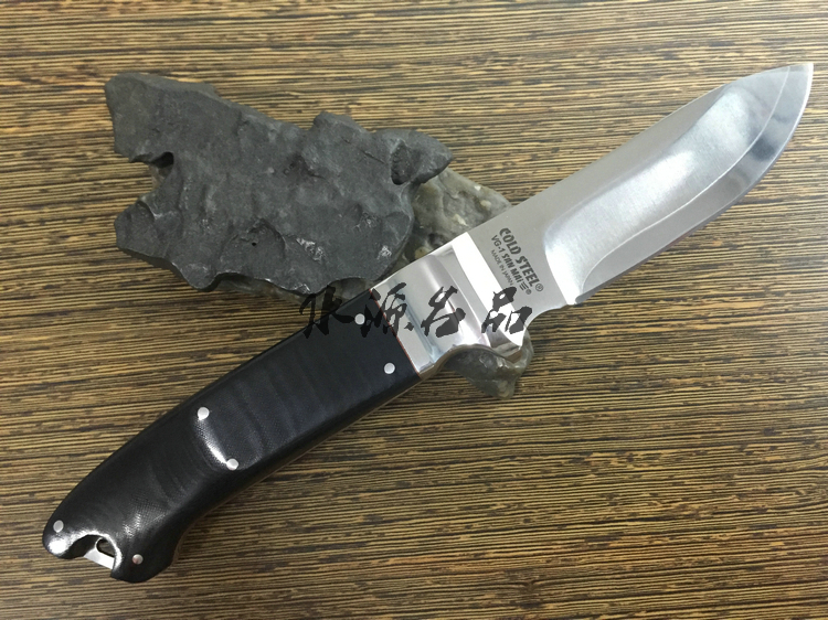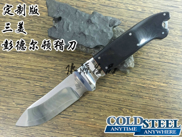 类 型: 直刃 型 号: 60SPH 全 长: 210mm 刃 长: 89mm 刃 材: San Mai III 硬 度: 60-61HRC 表 面: 缎面处理 刃 厚: 5mm 柄 长: 121mm 柄 材: 抛光黑色亚麻米卡塔+博尔斯特 不锈钢 重 量: 202g 原产地: 美国品牌,日本制造 刃 鞘: 牛皮 Cold Steel 总裁Lynn Thompson,在1973 年时买了一把刃匠Lloyd Pendleton 所制作的刃。后来两人成为好朋友,并且一起合作设计出Pendleton 猎刃。之前贩售的Pendleton 猎刃,都是胶柄款式,总觉得少了那一份名家手工刃的质感。 为了弥补这个缺憾,Cold Steel 终于拉出高刃款的生产线,来重新制造这把Pendleton 猎刃。无论是制刃的材质、手工的细腻度,都大为提高。 本产品刃刃使用Cold Steel 专利VG-1 San Mai III 三枚钢打造,并经过真空热处理、零度淬火,让刃刃强度达到最高峰。延伸至尾端的刃刃柄,以tapered tang 的型式处理,愈接近尾端逐渐变得细薄,借此保持手握时的平衡性。不锈钢护手,是这款刃的特点;握持的时候,护手的设计可以完善地保护手部。握柄使用抛光的黑色电木,质感相当绝佳。