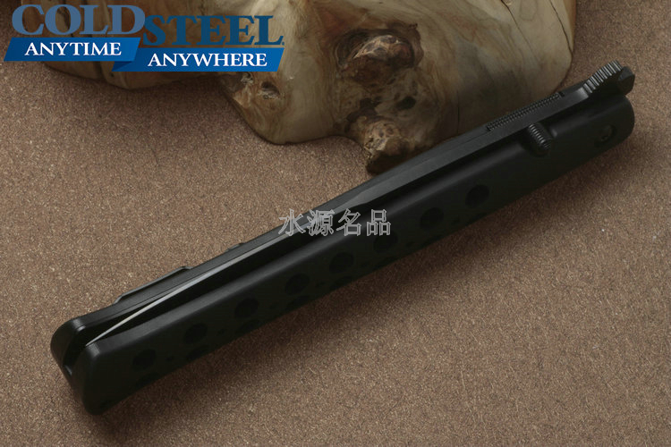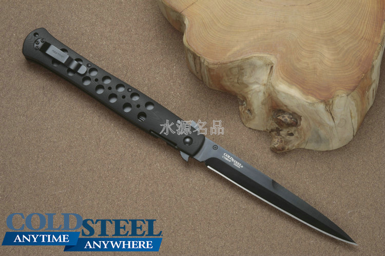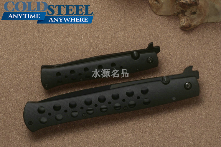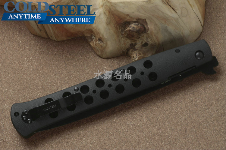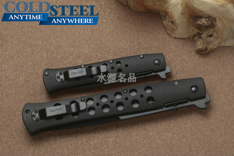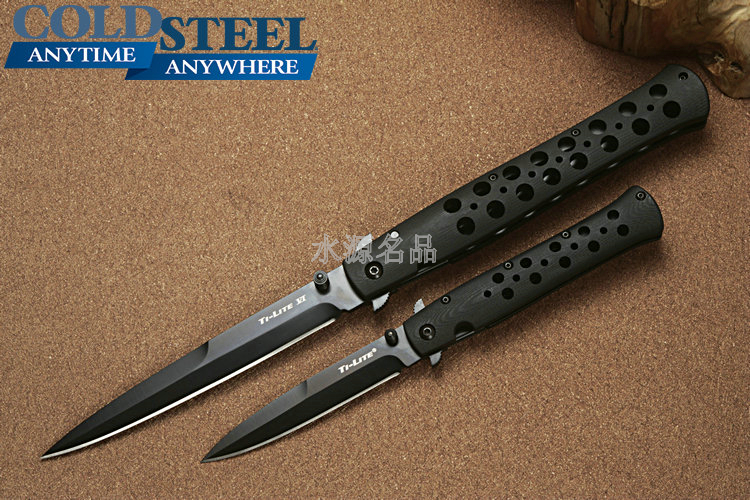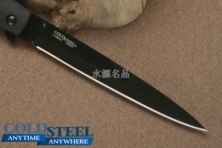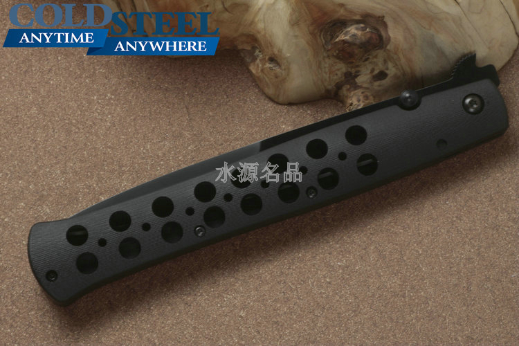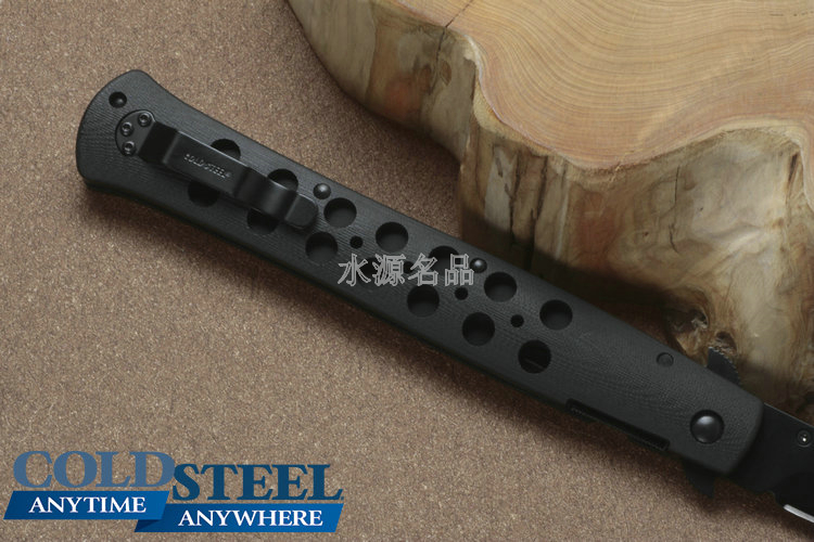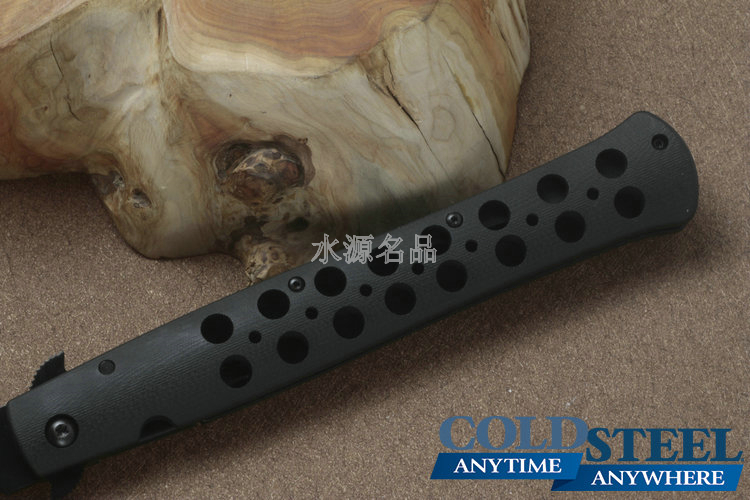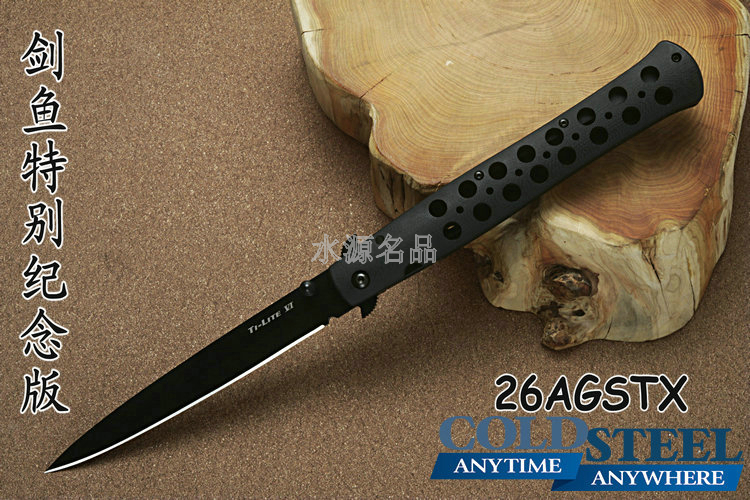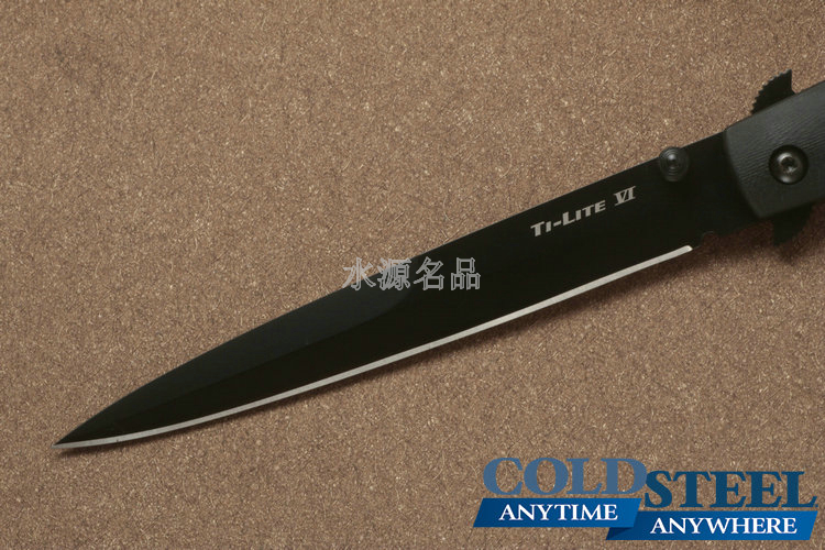 类 型: 折刃 型 号: 26AGSTX 全 长: 33.02cm 刃 长: 15.24cm 闭合长度: 17.78cm 刃 材: Carpenter CTS® BD1 Alloy 硬 度: 59-60HRC 表 面: 钛涂层 刃 厚: 0.4cm 柄 长: 17.78cm 柄 材: G10 锁 型: 线锁 重 量: 192g 原产地: 美国品牌,台湾生产 冷钢剑鱼Ti-Lite战术折刃是在经典的1950式弹簧折刃的基础上制作而成的。使用 Carpenter CTS® BD1 Alloy不锈钢制成的刃片表面采用珠光喷砂处理,拥有锋利的刃部以及坚固、针尖式的刃尖。手柄由超硬的7075铝合金制成,使用数控车床铣削加工并进行表面喷砂处理,并镀有放电电镀(Electric Discharge Plating,EDP)保护层。为了让刃具更具强度和安全性,这把刃配备了Ti-Lites和不锈钢钢板弹簧锁(在测试中能承受130磅的压力)。独特的齿翼刃鳍让刃具更为灵动,也更加便于使用者掌控刃具。 该系列拥有鲨鱼背鳍式刃鳍开关设计和单侧开刃柱设计,方便使用者尤其是右手使用者进行刃具的开合设计。磨砂面子托手柄为使用者提供出色握感,刃柄两侧开有的镂空孔洞既能够增加刃身的防滑性,又能很好的发挥排汗作用。 为了便于随身携带,Ti-Lites配有不显眼的小型钢制刃夹,并可以通过拇指螺栓单手或挂擦口袋边缘来迅速开刃。 感谢定制刃匠Phil Boguszewski,他的设计对Ti-Lite的创造拥有着决定性的影响。