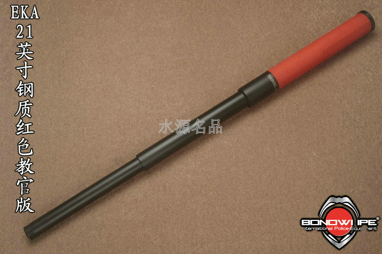收缩:212mm 展开:505mm 直径:28mm/22.5mm/18mm 重量:545g 锁型:机械锁 黑色版本和红色版本有什么区别? 区别仅在于手柄的颜色,红色钢制版本又称为教官版,红色手柄更适合教官在演示技术动作时,让学员清楚的看到动作运动轨迹. EKA甩棍视频 http://v.youku.com/v_show/id_XMjIzMzQ3NDY4.htmlBonowi品牌由沃尔夫冈?波普于1987年创立 公司全称为 德国博诺威国际安防器材有限公司 总部位于德国美因茨市 经过25年的不断发展 现已成为欧洲首屈一指的安全装备生产及研发企业 与多个国家政府及地方执法部门长期保持着合作关系 成为德国政府指定的安防设备生产企业 EKA甩棍在德国乃是警用装备,每支EKA都有世界独一无二的编号 EKA伸缩棍为BONOWI公司主营产品,由56个零件组成.整体结构复杂,配合精密.BONOWI EKA 秉承德国高标准质量管理体系,结合独特双转轮卡锁结构, 以完美的结构,顶级的质量,成为德国警察官方指定配置装备. EKA甩棍不用保养,不要往棍体内灌油。EKA是依靠其特殊巧妙的结构来实现顺畅的出棍收棍的 不要将EKA借给生手使用,因为曾出现生手使用敲地面暴力方式收棍,造成EKA机械棍内部损伤