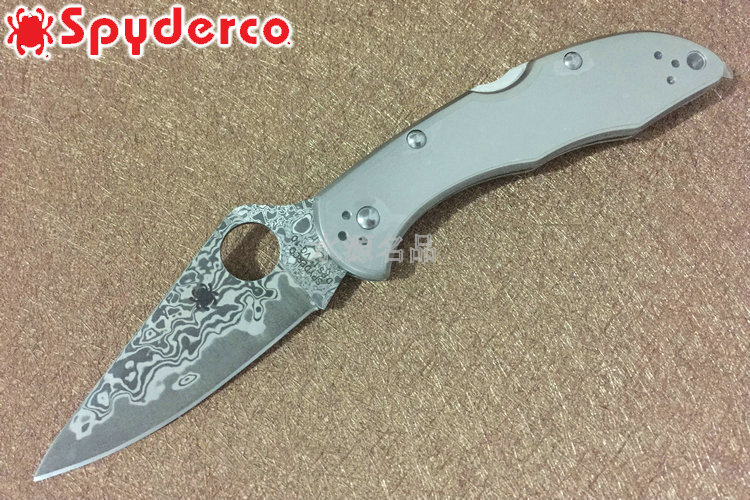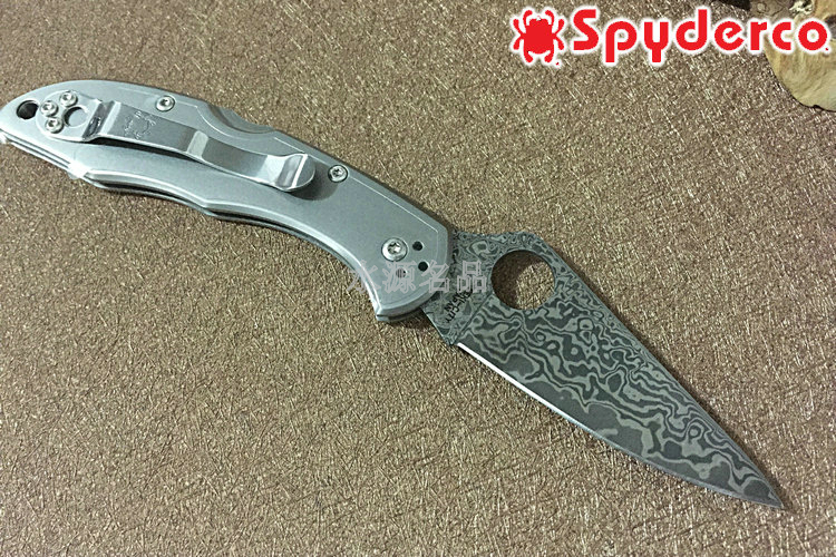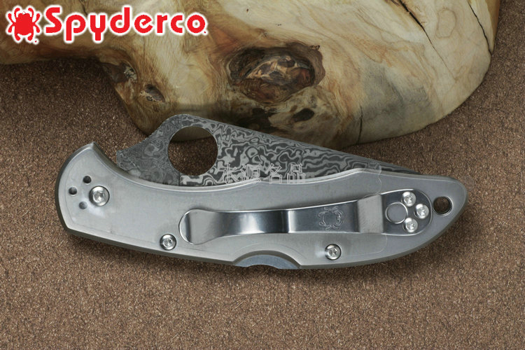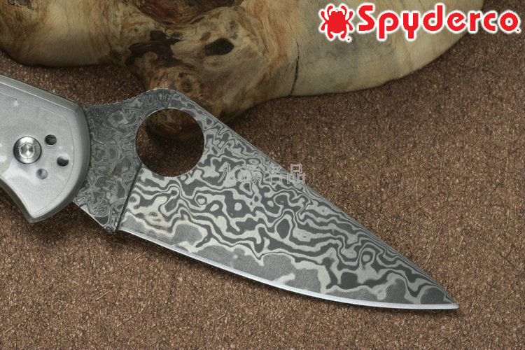 品 牌: SPYDERCO 型 号: C11TIPD 类 型: 折刃 全 长: 180mm 刃 长: 74mm 刃 厚: 2.5mm 柄 长: 107mm 闭 合: 107mm 刃 材: VG-10 Damascus 硬 度: 60-62HRC 表 面: 酸洗 柄 材: Titanium 锁 型: 背锁 重 量: 88g 附 件: 口袋夹子 包 装: 原厂包装 产 地: 美国 日本SEKI代工 Spyderco 公司在90年代出品的 Delica 与 Endura 两款刃,重点便在强调体积小、重量轻,易于使用;单手便能开合。在2002年,Spyderco 公司将 Delica 的刃身改以VG-10钢材打造,刃柄使用质轻耐用的玻璃纤维强化尼龙塑造,整体重量更仅只有54克;表面有凹凸纹路,使用时可握得更稳。刃柄侧边的腰带夹可用硬币松开,并且依使用习惯移到另一面装上。 SPYDERCO是个创立于美国科罗拉多州的刃具公司,它以前所未有的创新精神而闻名。现代名牌折刃中的单手开启功能、便于携带的卡子(CLIP)这些几乎成为现代高科技折刃标志的设计。正是SPYDERCO发明的! 如今不断创新的SPYDERCO公司已拥有数十项设计专利。其商标性的单手开启园孔造型不仅是最快捷顺畅的开启方式,而且这种独特的造型使人们一瞥之下就能认出那是SPYDERCO的产品。开启最为迅捷! SPYDERCO另一独特设计专利是SPYDERCO锯齿,这一发明是受到了鲨鱼牙齿的启发,SPYDERCO是不仅在业界最先成功使用锯齿刃!而且其与众不同的设计使之比普通的锯齿刃具有更强的切割力和更长的保持能力,它的切割力足以割开Kevlar-凯芙拉材料的防割手套! SPYDERCO另一强大优势就是它选用的钢材,它们从不用那些低成本、低性能的420或425系列的钢材。而它选用的钢材有AUS系列、ATS系列、440系列以及VG系列,甚至制刃界中的顶极材料CPM440V都是它们的常用材料。在美国Spyderco被称为“标准创立者(Standard Setter)”创新的设计,精良的选材,完美的工艺。 SPYDERCO的目标是:"无论你拥有多少刃具,其中必有SPYDERCO"