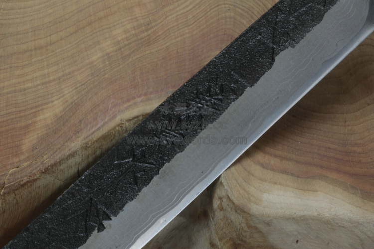 类 型: 直刃 型 号: KB-219 全 长:210mm 刃 长: 95mm 刃 材: Damascus,Blue Steel 15Layers 青纸15层大马士革钢 硬 度: 60HRC 刃 厚: 3.5mm 柄 长: 115mm 柄 材: Damascus,Blue Steel 15Layers 青纸15层大马士革钢 重 量: 105g 原产地: 日本 Damascus,Blue Steel 15Layers青纸15层大马士革钢,BLUE在这里应翻译为青色而不是蓝色,中国有句俗话“青出于蓝而胜于蓝”鬼子受中华文明影响深远。 过去数百年来,日本猎人为了在艰困环境中狩猎来维持生活,靠的就是一把制作精良的刃。时至今日,狩猎刃的制作融入许多现代技术,刃的品质更加优异,而这也是关兼常作最擅长之处。以日本法打造的猎刃,采铁与钢相结合,拥有三样特征:(一)拥有良好切割性能,及平衡的手感;(二)钢材部分硬而薄,包夹在铁里的钢,会顺着磨刃的角度,依序往上露出,永保刃口锋利;(三)经水淬火刃口形成波浪纹路,甚至起微妙的晶化而泛蓝光,浑然天成的美感实欧美刃具无法比拟。