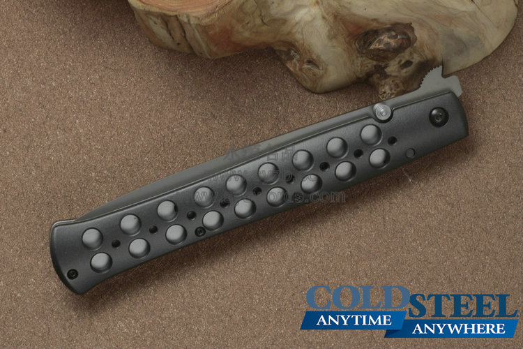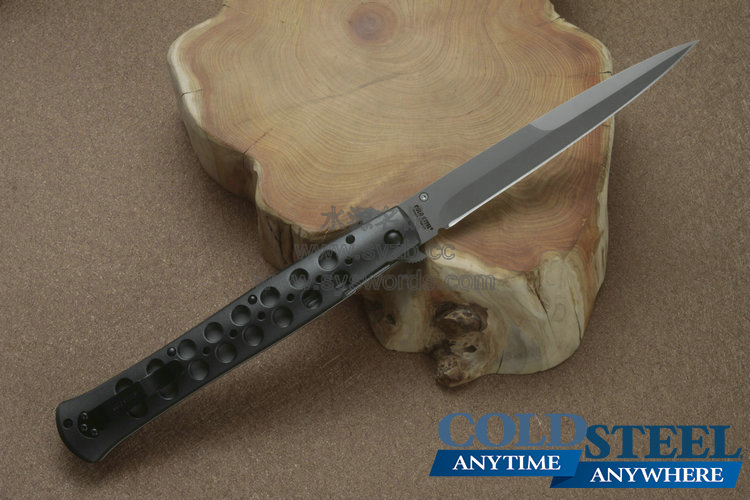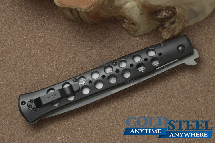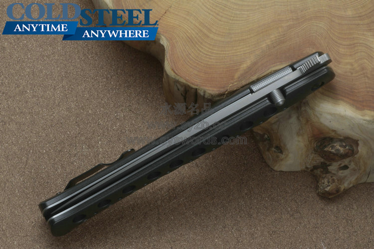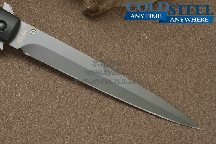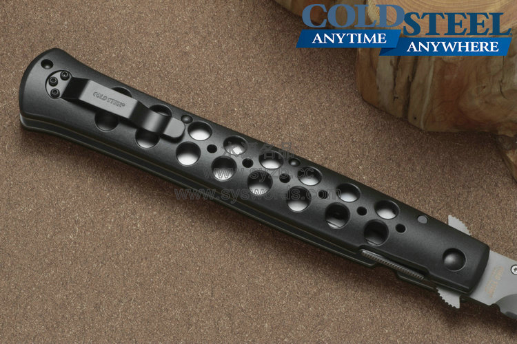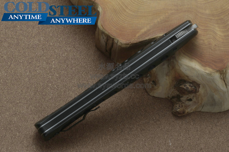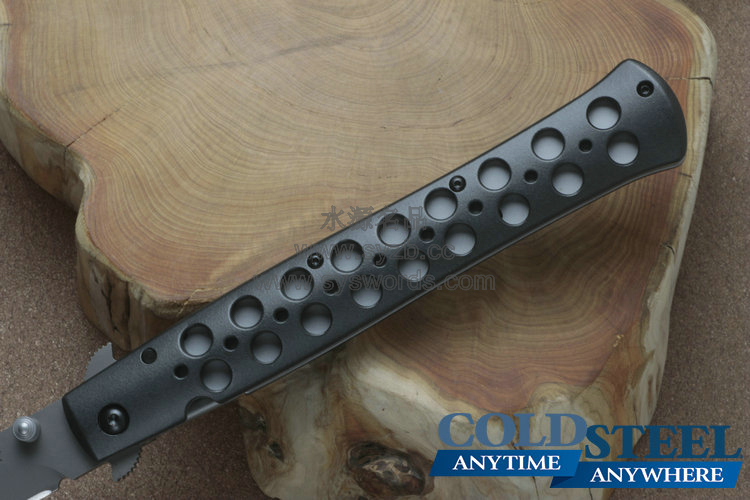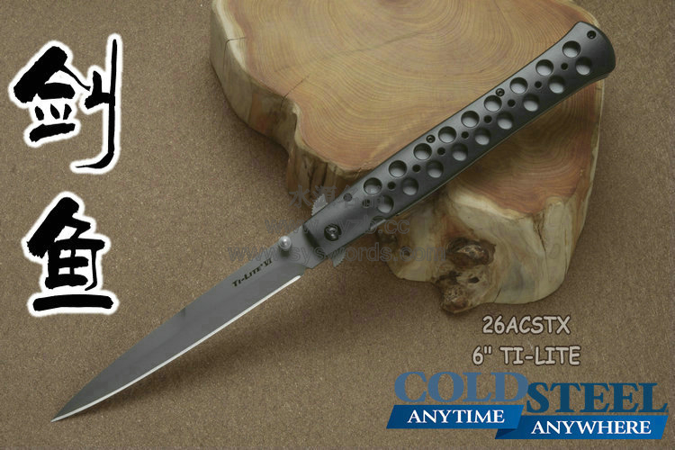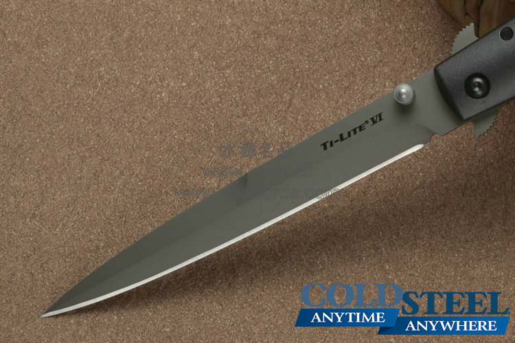 类 型: 折刃 型 号: 26ACSTX 全 长: 33.02cm 刃 长: 15.24cm 闭合长度: 17.78cm 刃 材: Carpenter CTS® BD1 Alloy 硬 度: 59-60HRC 表 面: 钛涂层 刃 厚: 0.4cm 柄 长: 12.2cm 柄 材: 7075高级铝合金/440A钢0度淬火 锁 型: 线锁 重 量: 270g 原产地: 美国品牌,台湾生产 冷钢剑鱼Ti-Lite战术折刃是在经典的1950式弹簧折刃的基础上制作而成的。使用 Carpenter CTS® BD1 Alloy不锈钢制成的刃片表面采用珠光喷砂处理,拥有锋利的刃部以及坚固、针尖式的刃尖。手柄由超硬的7075铝合金制成,使用数控车床铣削加工并进行表面喷砂处理,并镀有放电电镀(Electric Discharge Plating,EDP)保护层。为了让刃具更具强度和安全性,这把刃配备了Ti-Lites和不锈钢钢板弹簧锁(在测试中能承受130磅的压力)。独特的齿翼刃鳍让刃具更为灵动,也更加便于使用者掌控刃具。 该系列拥有鲨鱼背鳍式刃鳍开关设计和单侧开刃柱设计,方便使用者尤其是右手使用者进行刃具的开合设计。磨砂面子托手柄为使用者提供出色握感,刃柄两侧开有的镂空孔洞既能够增加刃身的防滑性,又能很好的发挥排汗作用。 为了便于随身携带,Ti-Lites配有不显眼的小型钢制刃夹,并可以通过拇指螺栓单手或挂擦口袋边缘来迅速开刃。 感谢定制刃匠Phil Boguszewski,他的设计对Ti-Lite的创造拥有着决定性的影响。