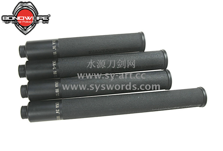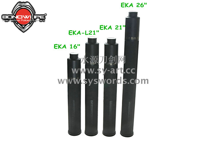 收缩:212mm 展开:505mm 直径:28mm/22.5mm/18mm 重量:370g 锁型:机械锁 EKA甩棍视频http://v.youku.com/v_show/id_XMjIzMzQ3NDY4.html Bonowi品牌由沃尔夫冈?波普于1987年创立 公司全称为 德国博诺威国际安防器材有限公司 总部位于德国美因茨市 经过25年的不断发展 现已成为欧洲首屈一指的安全装备生产及研发企业 与多个国家政府及地方执法部门长期保持着合作关系 成为德国政府指定的安防设备生产企业 EKA甩棍在德国乃是警用装备,每支EKA都有世界独一无二的编号 德国EKA甩棍出厂时不带包装,因为EKA是给欧洲武装军人警察使用,这些部门只在乎性能和品质。德国BONOWI把所有的成本都花在了产品本身,这点和国人喜欢做花哨的包装截然相反,请不要因此而惊讶,EKA绝对是当之无愧的世界顶级甩棍。 EKA甩棍不用保养,不要往棍体内灌油。EKA是依靠其特殊巧妙的结构来实现顺畅的出棍收棍的 不要将EKA借给生手使用,因为曾出现生手使用敲地面暴力方式收棍,造成EKA机械棍内部损伤