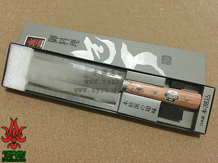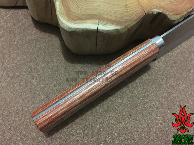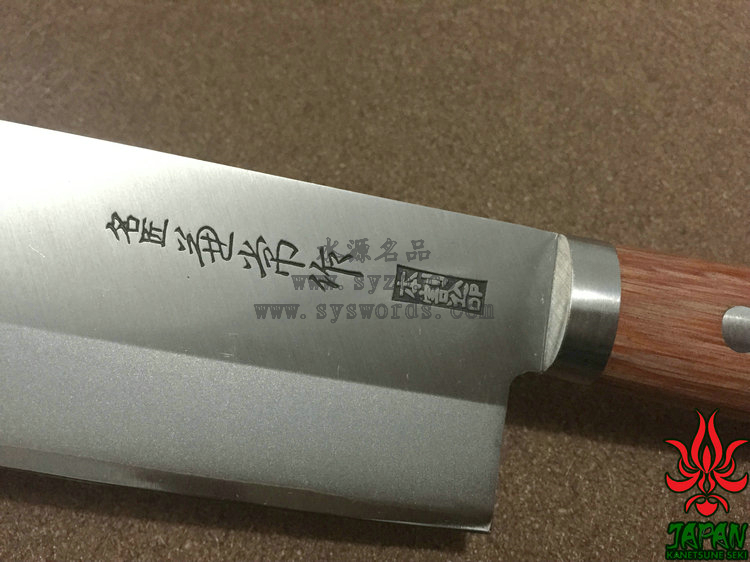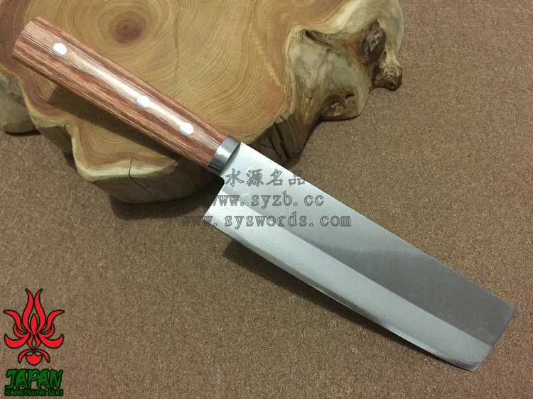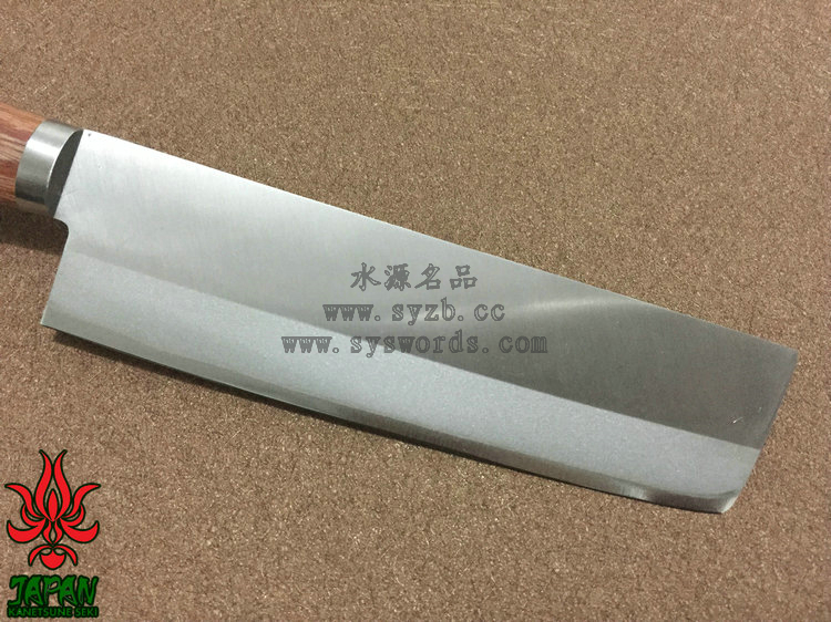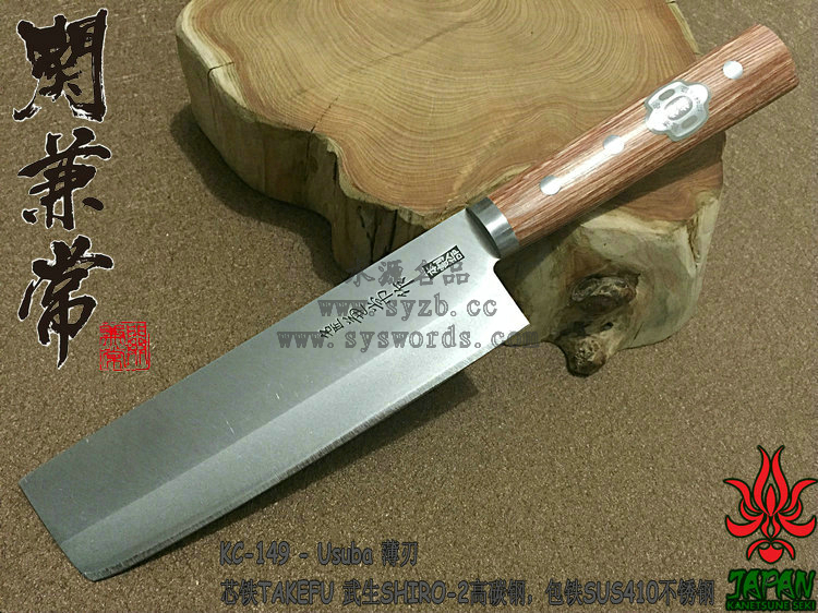 类 型: Usuba薄刃 型 号: KC-149全 长: 290mm 刃 长: 165mm刃 材: Takefu Shiro2 High carbon steel / SUS410 Stainless Steel 武生Shiro2高碳钢核心 SUS410夹钢硬 度: 59HRC以上 刃 厚: 1.8mm 柄 长: 125mm 柄 材: 棕色压缩木手柄重 量: 175g 产 地: 日本 为了更好的打开国际市场,关氏推出了一系列拥有日本传统特色的厨刃用具,融合古法技艺和现代工艺而成,并兼具二者之长。这款KC-149使用武生Shiro2高碳钢和SUS410不锈钢锻造,核心的Shiro2高碳钢钢非常锋利,而两侧包夹的SUS410容易打磨且不易生锈。两种钢材的结合处进行双相热处理加工(Dual-Phase treatment),保持刃身强度和其他性能。经过精心研磨后刃具拥有极出色的锋利度和切削能力,并被打磨成符合中国用户使用习惯的厨刃,刃身表面印刻“兼常作”标志。刃具手柄两侧贴附棕色合成木并使用三根不锈钢钉固定,手感细腻出色。请在进行处理食材时使用,并避免进行冷冻食品、骨头等坚硬材料的劈砍处理,使用完毕后进行完全清洗并彻底干燥。关于Shiro2钢:Shiro2是非常出色的切削钢材。钢材中添加了镍和铬材质,让其淬火性能高于碳钢的SK系列。Shiro2适用于较厚板材的淬火,具有优良的韧性,被广泛用于较薄的切削工具:如锋利的刃,锯子,厨房刃具等。退火工艺让钢材球化处理更为容易,淬火和回火工艺让钢材内渗碳体分散的细致和均匀。它有助于提高延展性,防止刃具使用中出现刻痕,并大大增加产品持久的切削能力。此外,钢材中添加的镍和铬导致内部形成显微结构的晶粒,大大增加切削性能,并增加钢材的稳定性能。