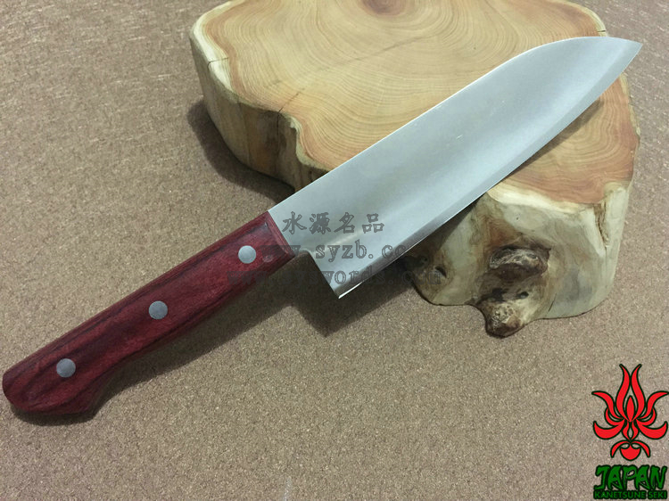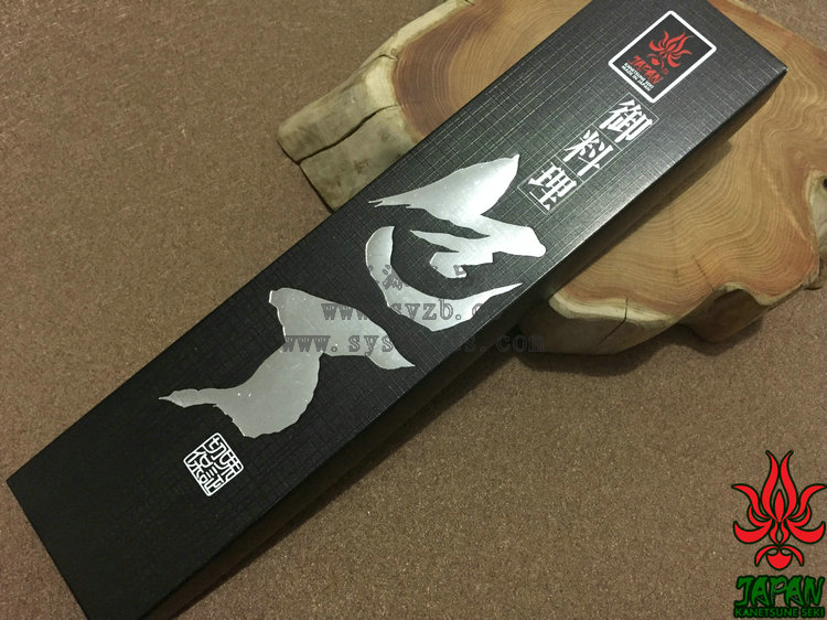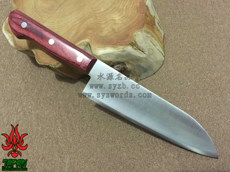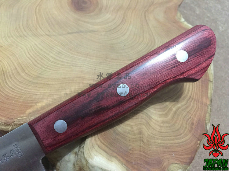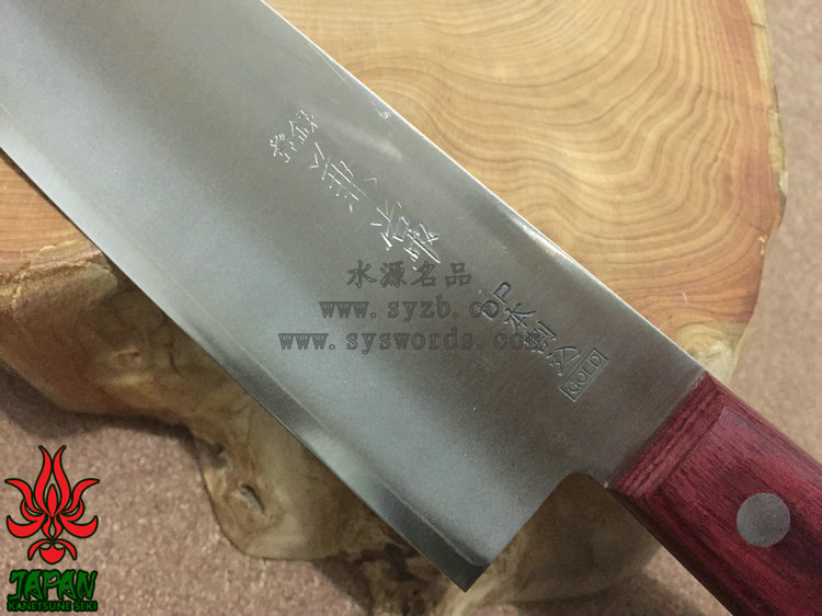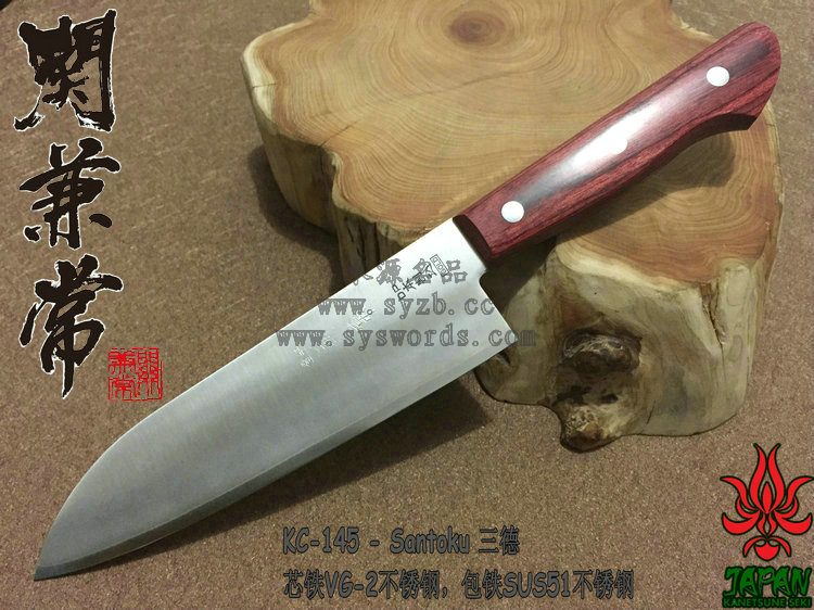 为了更好的打开国际市场,关氏推出了一系列拥有日本传统特色的厨刃用具,融合古法技艺和现代工艺而成,并兼具二者之长。这款KC-145使用VG-2和SUS51不锈钢锻造,核心的VG-2钢非常锋利,而两侧包夹的SUS51容易打磨且不易生锈。两种钢材的结合处进行双相热处理加工(Dual-Phase treatment),保持刃身强度和其他性能。经过精心研磨后刃具拥有极出色的锋利度和切削能力,并被打磨成符合中国用户使用习惯的厨刃,刃身表面印刻“兼常作”标志。