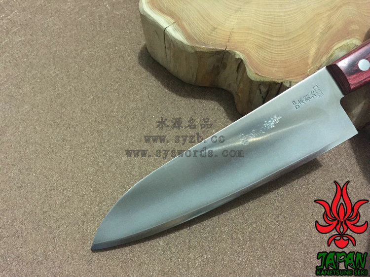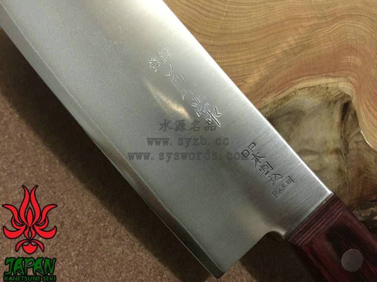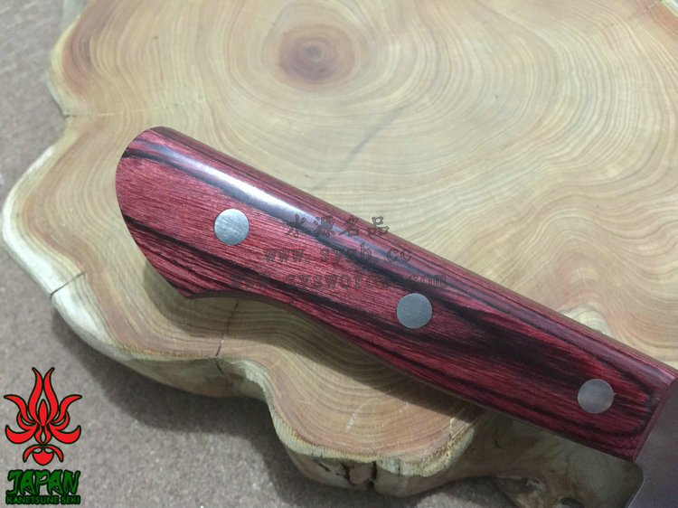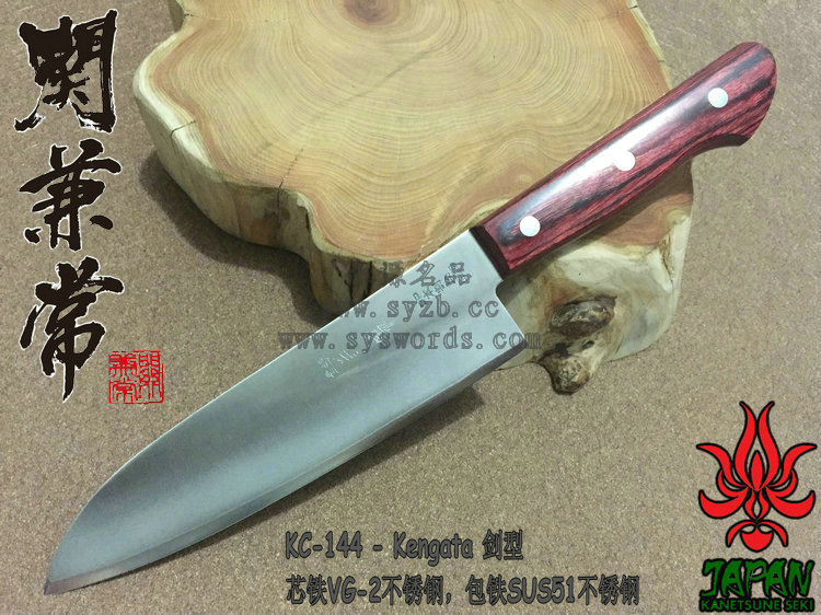 为了更好的打开国际市场,关氏推出了一系列拥有日本传统特色的厨刃用具,融合古法技艺和现代工艺而成,并兼具二者之长。这款KC-144使用VG-2和SUS51不锈钢锻造,核心的VG-2钢非常锋利,而两侧包夹的SUS51容易打磨且不易生锈。两种钢材的结合处进行双相热处理加工(Dual-Phase treatment),保持刃身强度和其他性能。经过精心研磨后刃具拥有极出色的锋利度和切削能力,并被打磨成符合中国用户使用习惯的厨刃,刃身表面印刻“兼常作”标志。