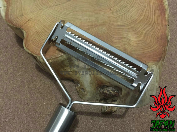 你可以不需要碰到刃片就可以改变拉丝器所拉丝的粗细,只需要轻轻的翻转过来即可。可以拉出3mm及3.5mm果蔬条。