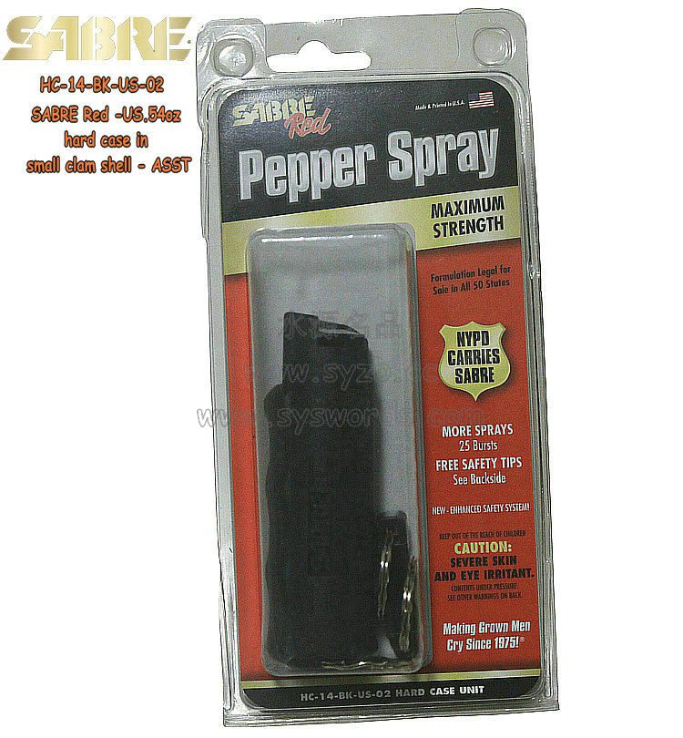 简单描述: Sabre 沙豹喷雾 小型吊卡包装0.54盎司抗强风水柱型黑色硬壳