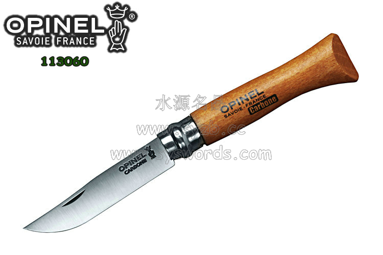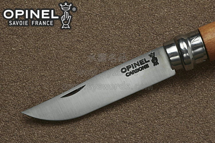 OPINEL的碳钢产品,请在使用后及时用水清洗擦干。碳钢容易生锈,请保持经常擦拭保养的好习惯。