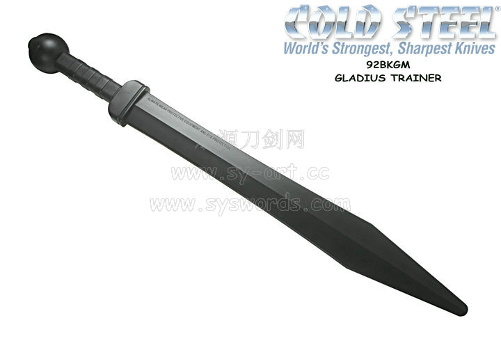 类 型: 罗马短剑练习剑 型 号: 92BKGM 全 长: 78.74mm 材 质: 聚丙烯 (Polypropylene) 刃 长: 55.88mm 柄 材: 聚丙烯(Polypropylene) 重 量: 377g 原产地: 台湾 要成为技术精湛的剑客必须不停地练习,但真使用真正的刃剑,会有安全的考量,于是冷钢公司设计了这款罗马训练剑。 刃柄尾部球体的前端有一颗钝钉,以螺丝的形态锁上,用来增加战棍的锤击威力,使用者可以自行拆卸。 采用聚丙烯 (Polypropylene)塑造整个罗马训练剑,压印木质纹路,重量变轻更好掌控,坚硬度与耐用度也大为提高。 1重量分配及手感更接近真实刃剑,增加训练时的真实感. 2硬度较高,并具有很好的弹性和韧性,不会在对抗中折断. 3无尖,无刃,是安全的训练刃具和很好的防身用品,不受管制. 4免于保养,无木刃\木剑中普遍存在的变形\开裂\发霉等问题,并可水洗.