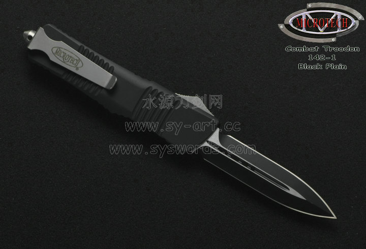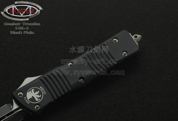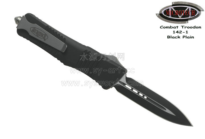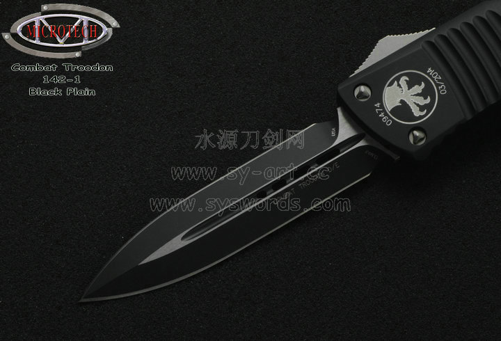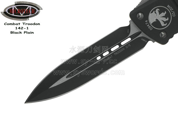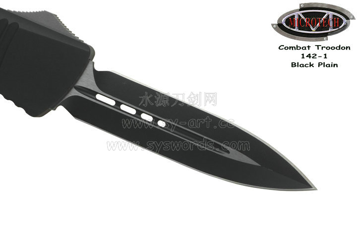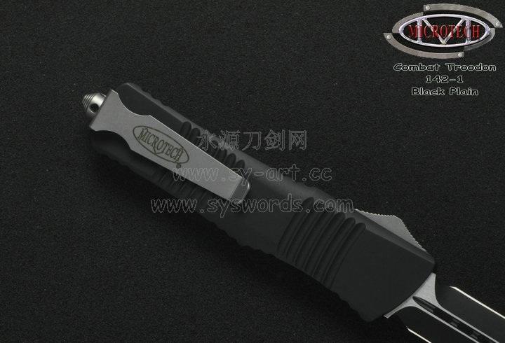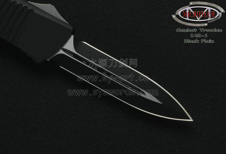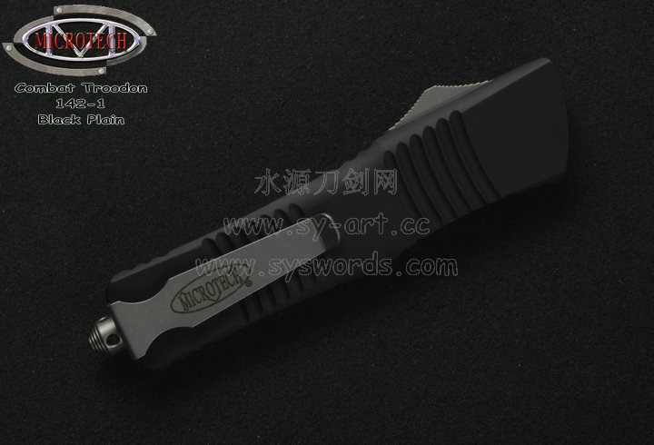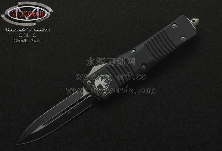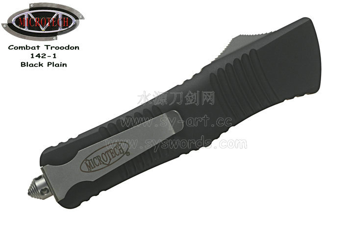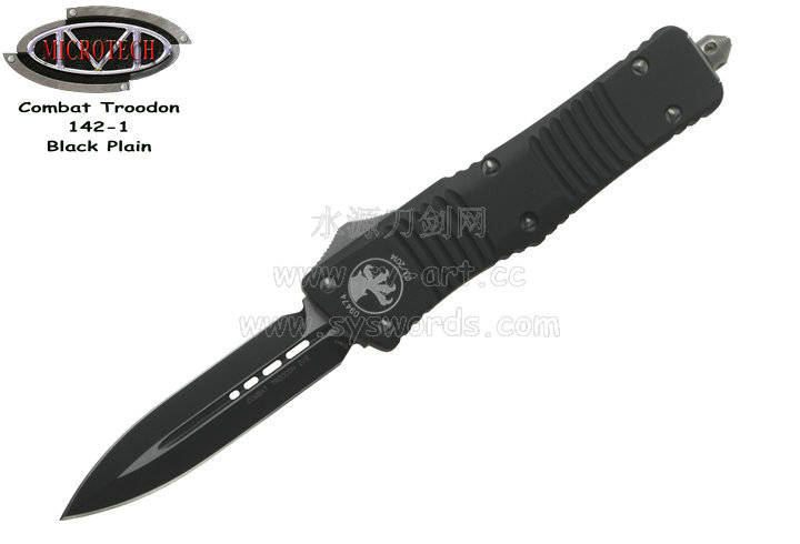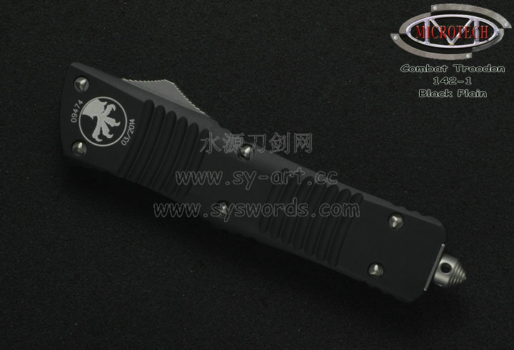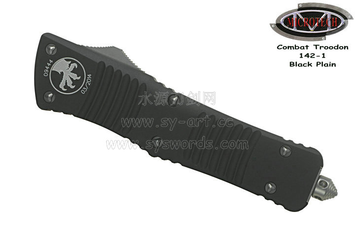 类 型: OTF AUTO 型 号: Combat Troodon 142-1 全 长: 239mm 刃 长: 97mm 闭合长度: 142mm 刃 材: ELMAX 表 面:黑色-拉丝双色 硬 度: 59-60 HRC 刃 厚: 3.2mm 柄 长: 142mm 柄 材: 铝合金T6-6061,阳极电镀+尾部破窗锥 机 制: 自动直线跳出和收回 重 量: 152g 原产地: 美国 美国Microtec-微技术一个传奇的名字,最推出了一系列令人称赞的自动刃,在全球有着数以万计的痴迷者。这个名字代表着许多含义:最高科技含量的产品,最高度知名的品牌,名流的奢华用品,自动刃具的王者! Combat Troodon“战术恐龙”系列,是Microtech公司2006年又一力作,也是当年的主打产品。Combat 意思是(格斗)Troodon 是白垩纪晚期一种凶猛的恐龙,因为而得名。港台地区译作:伤齿龙 战术恐龙-MT142的线条流畅,更符合手部的人体工程学结构。内部的机械结构设计巧妙、独特、安全。特有的钨锰金属球形玻璃击破器,拥有着很高的硬度。对称的双锋,笔直的中脊,高级的S35VN粉末钢。看到这些不禁会联想到凶猛的白垩纪恐龙。